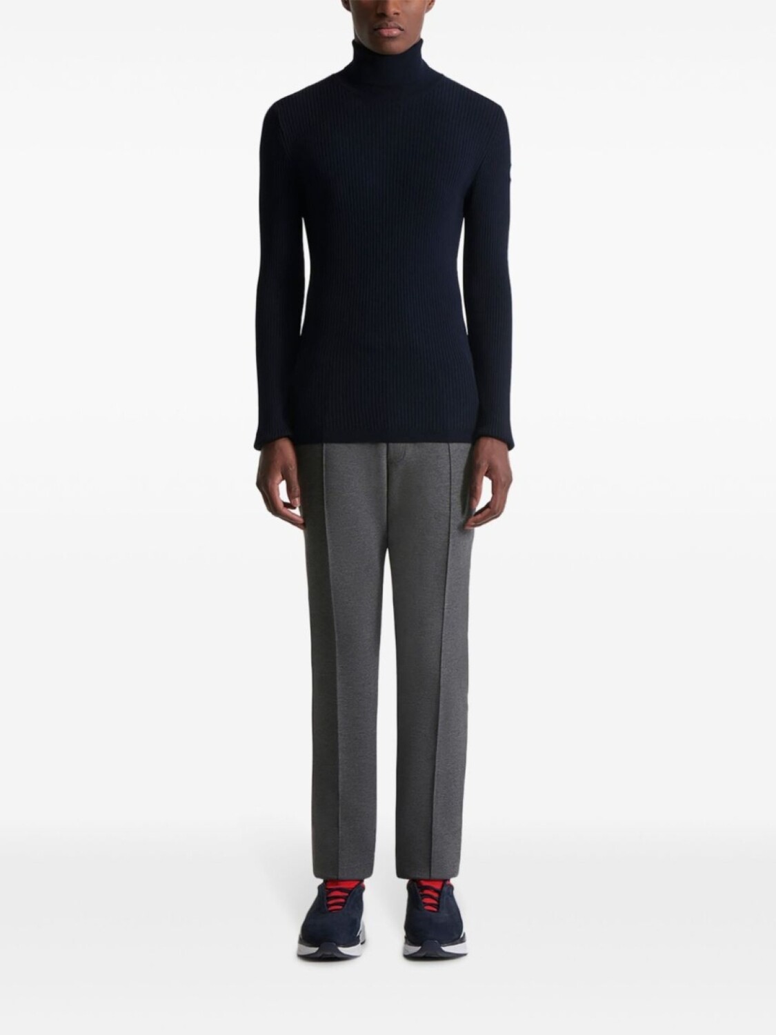 Темно-синяя водолазка с длинными рукавами, нашивка с логотипом на рукаве