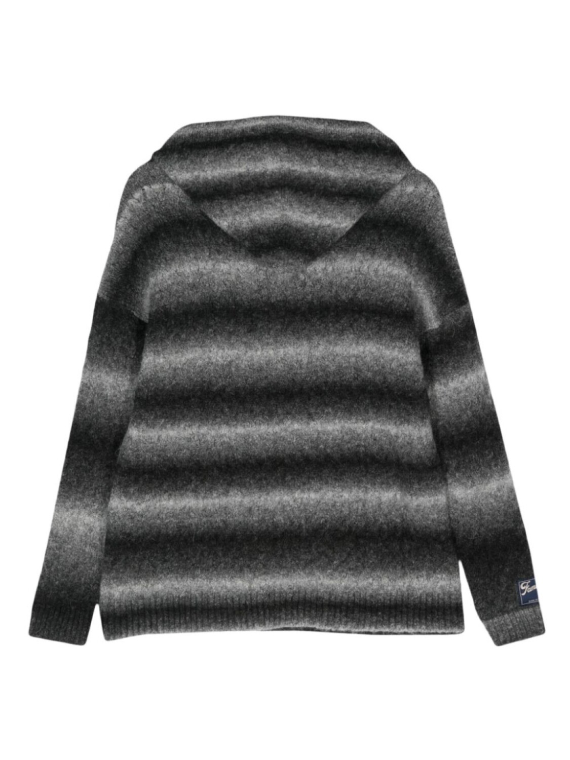 Темно-зеленый/светло-серый, вязаный дизайн, матовое покрытие, эффект омбре, затягивающийся на шнурок капюшон, накладной карман спереди, приспущенные плечи, длинные рукава, подол и манжеты в рубчик