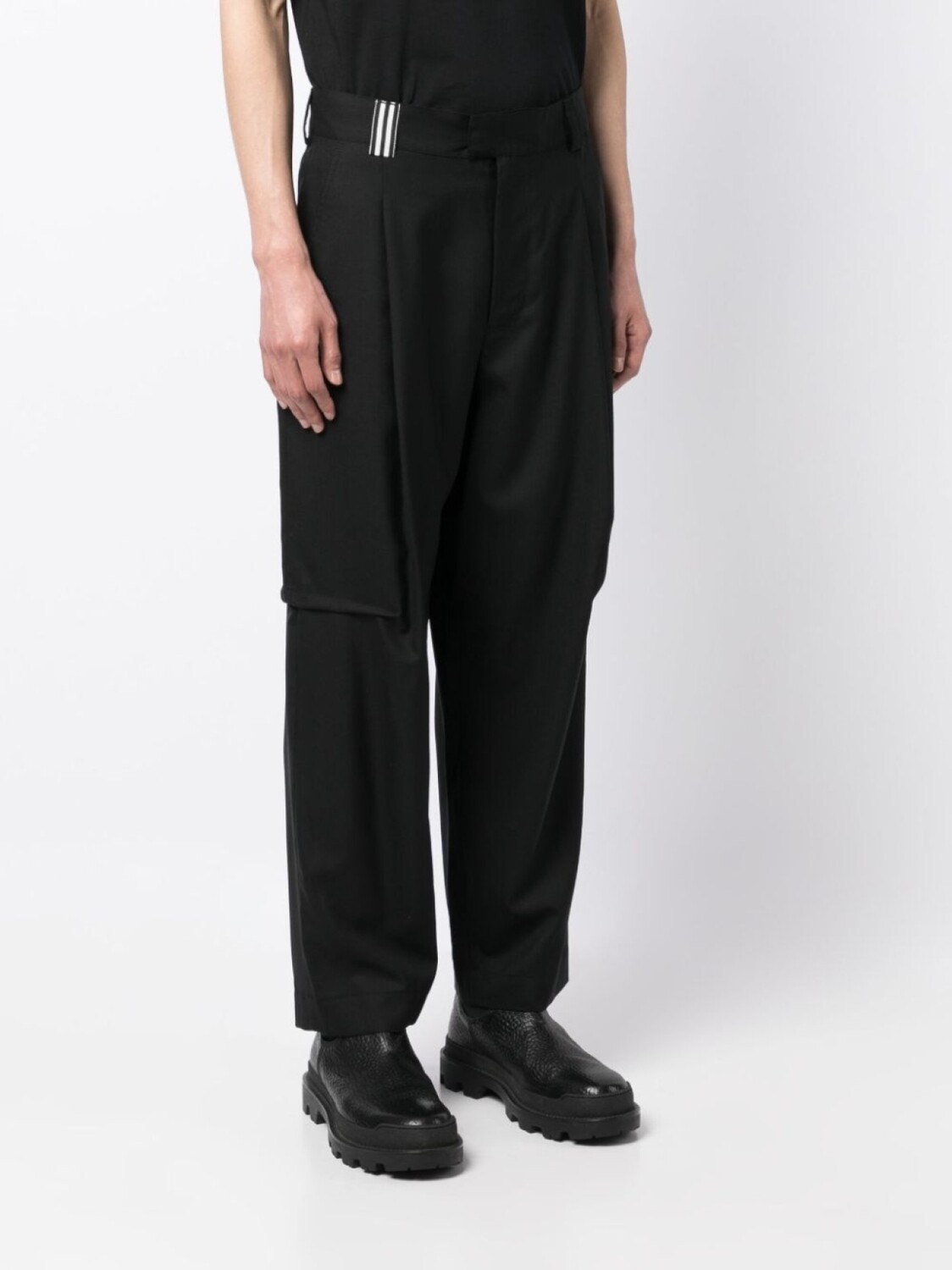 Черный, шерсть, петли для ремня, потайная застежка спереди, два прорезных кармана по бокам, регулируемый ремешок сзади, прорезной карман сзади, прямой крой и прямой подол. Это унисекс-модель. Обратите внимание, что для нее используется мужская размерная сетка.