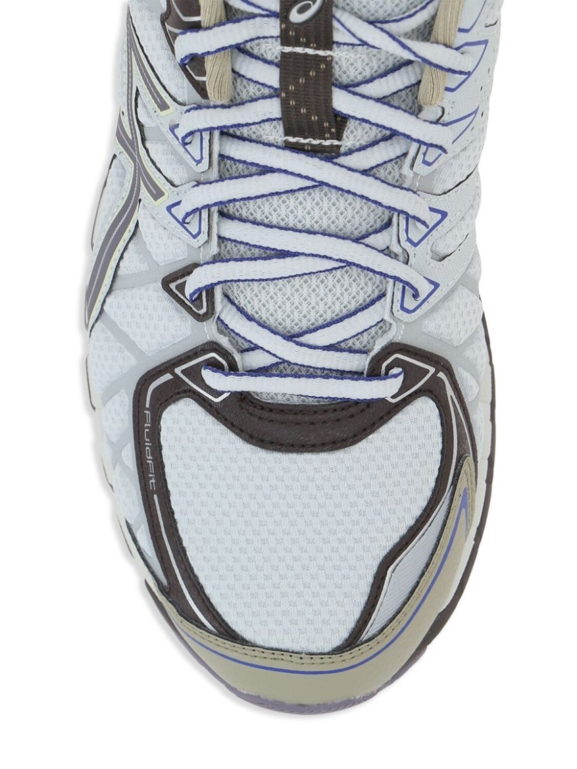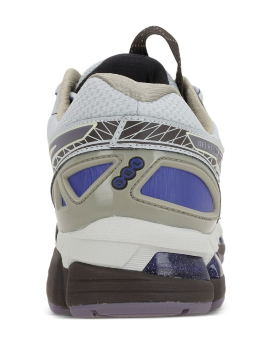 Светло-серая шнуровка спереди, язычок для подтягивания, фирменная амортизация, технология GEL, ребристая резиновая подошва