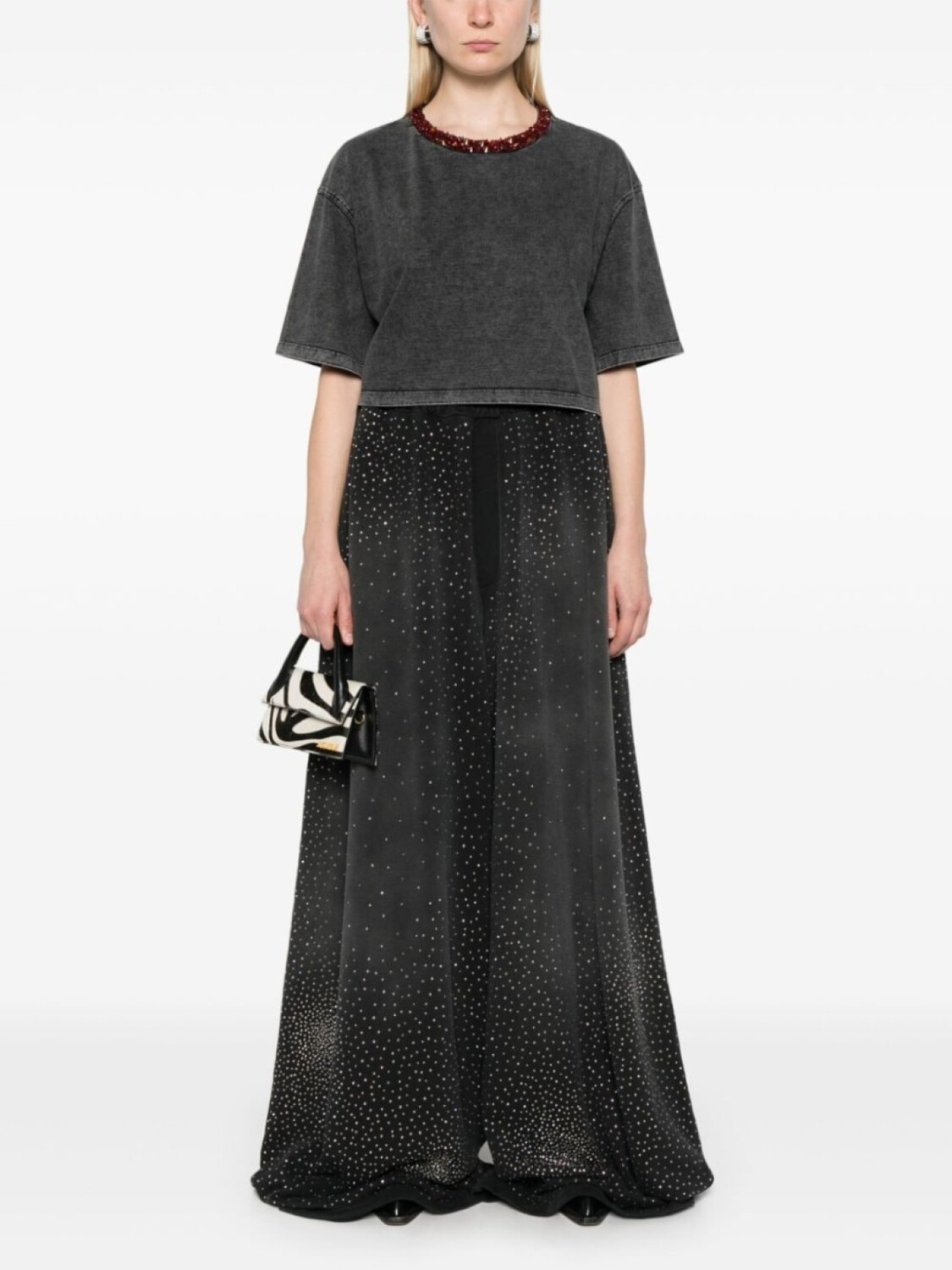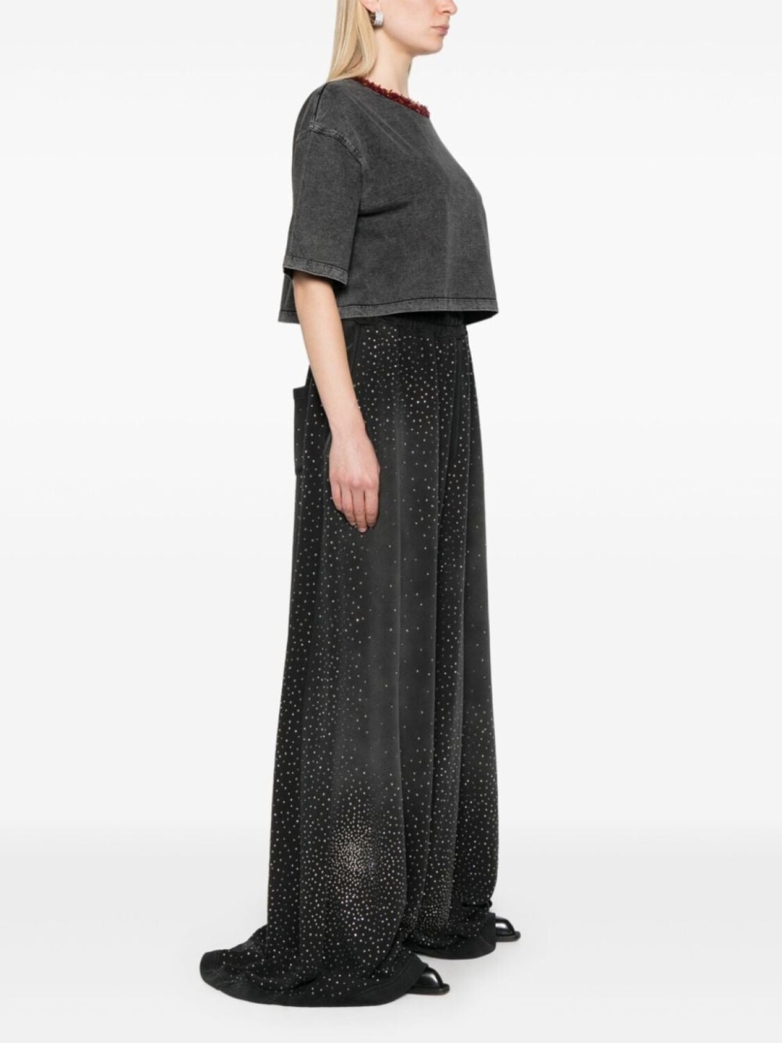 Брюки палаццо, украшенные стразами Giuseppe Di Morabito, черный 65 355₽