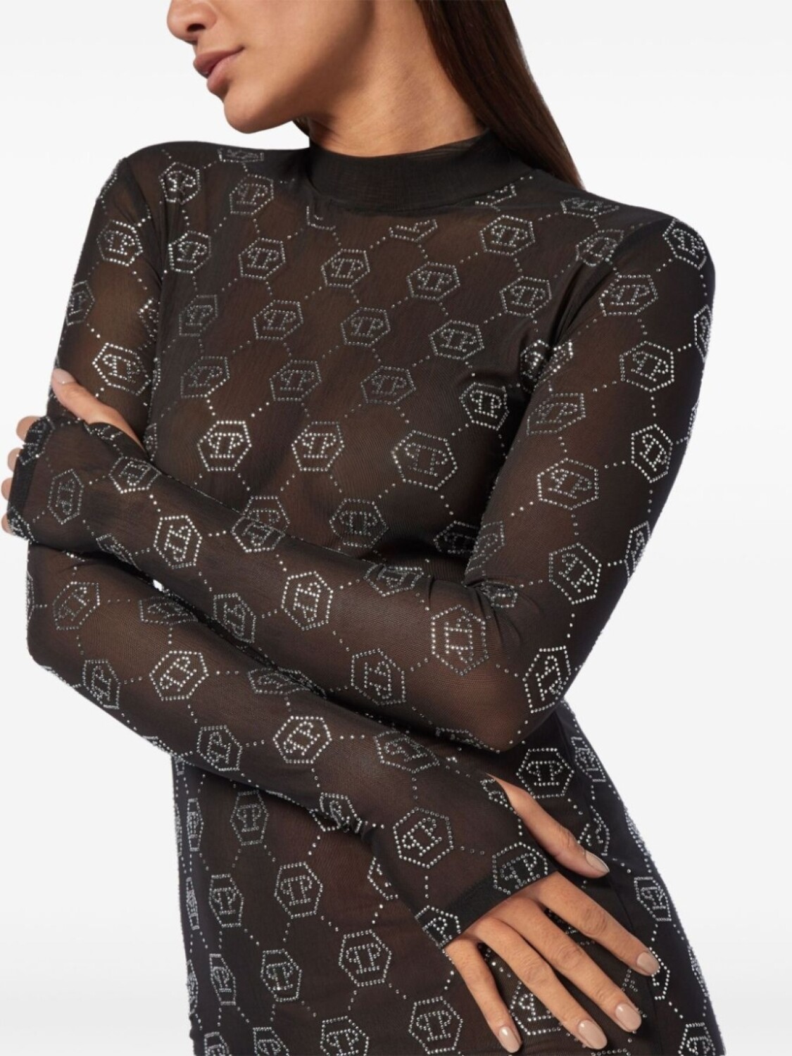 Платье из тюля с монограммой Philipp Plein, черный 108 888₽