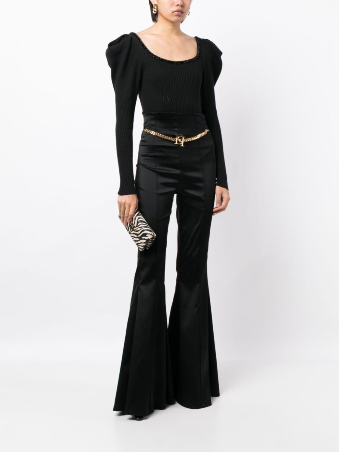 Расклешенные брюки с цепочкой Elisabetta Franchi, черный 91 018₽