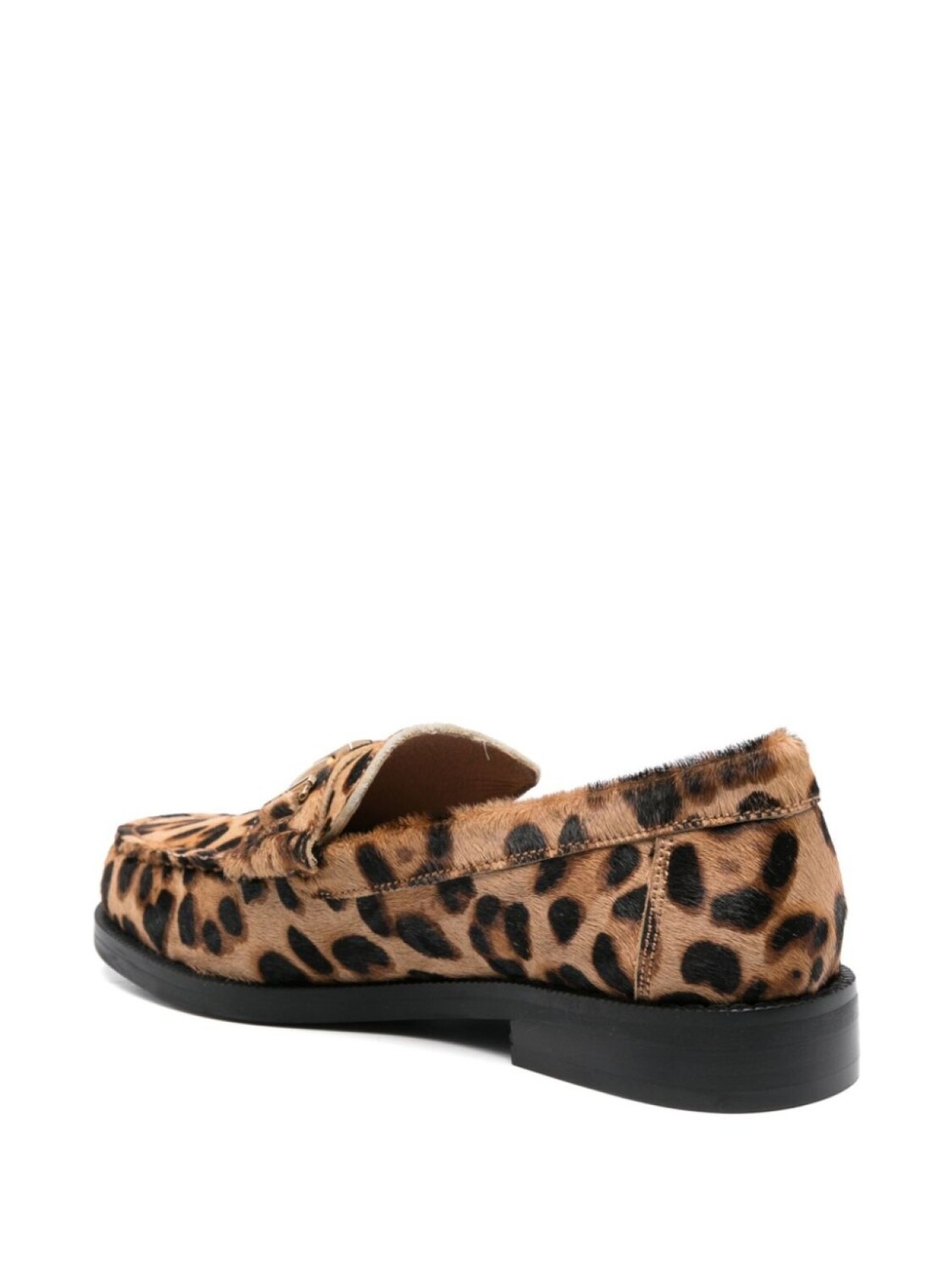 Анималистичный коричневый наборный каблук с леопардовым принтом и золотистой пластиной с логотипом