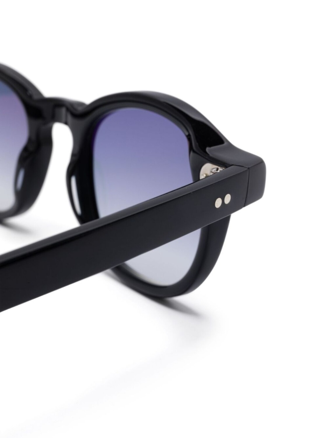 Черный, глянцевая фактура, оправа «панто», синие линзы, линзы с защитой от ультрафиолета, прямые дужки, закругленные концы с гравировкой логотипа, В комплект входит защитный чехол для очков.