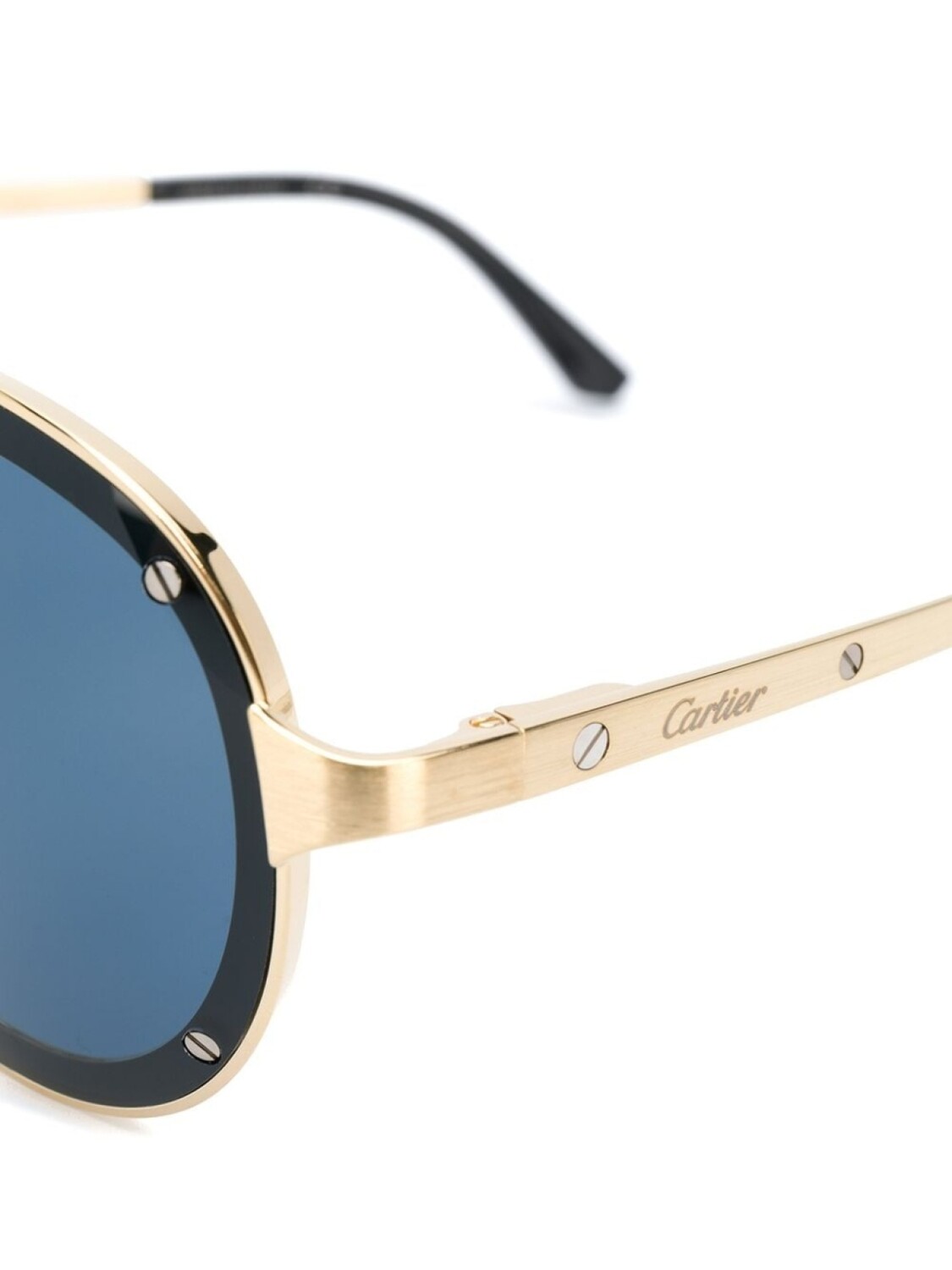 Солнцезащитные очки-авиаторы от Cartier. Оправа 'авиатор', затемненные линзы, золотистая фурнитура и логотип бренда на внешней стороне дужки. Прилагается защитный чехол.