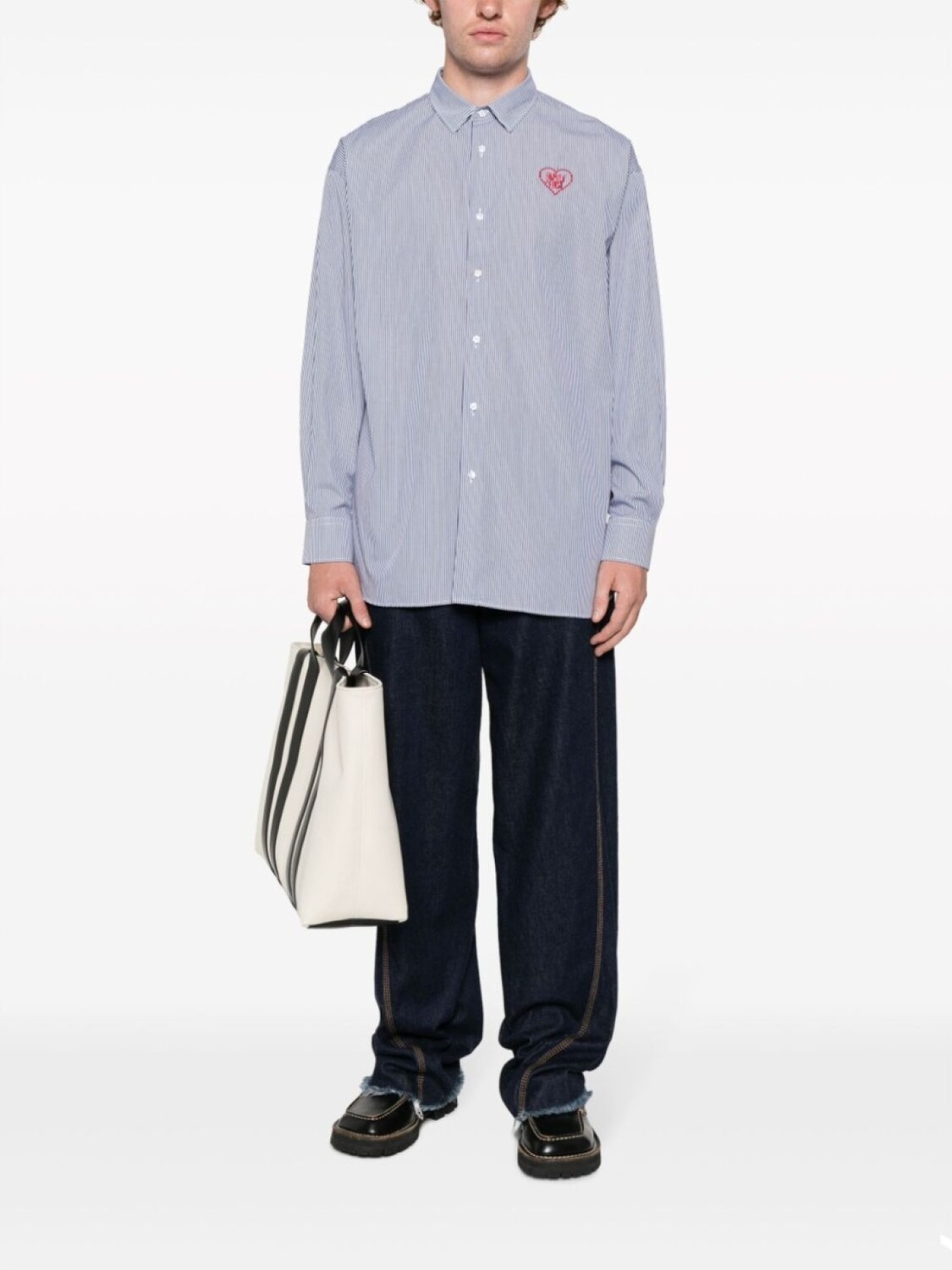 Полосатая рубашка с вышитым логотипом Family First, синий