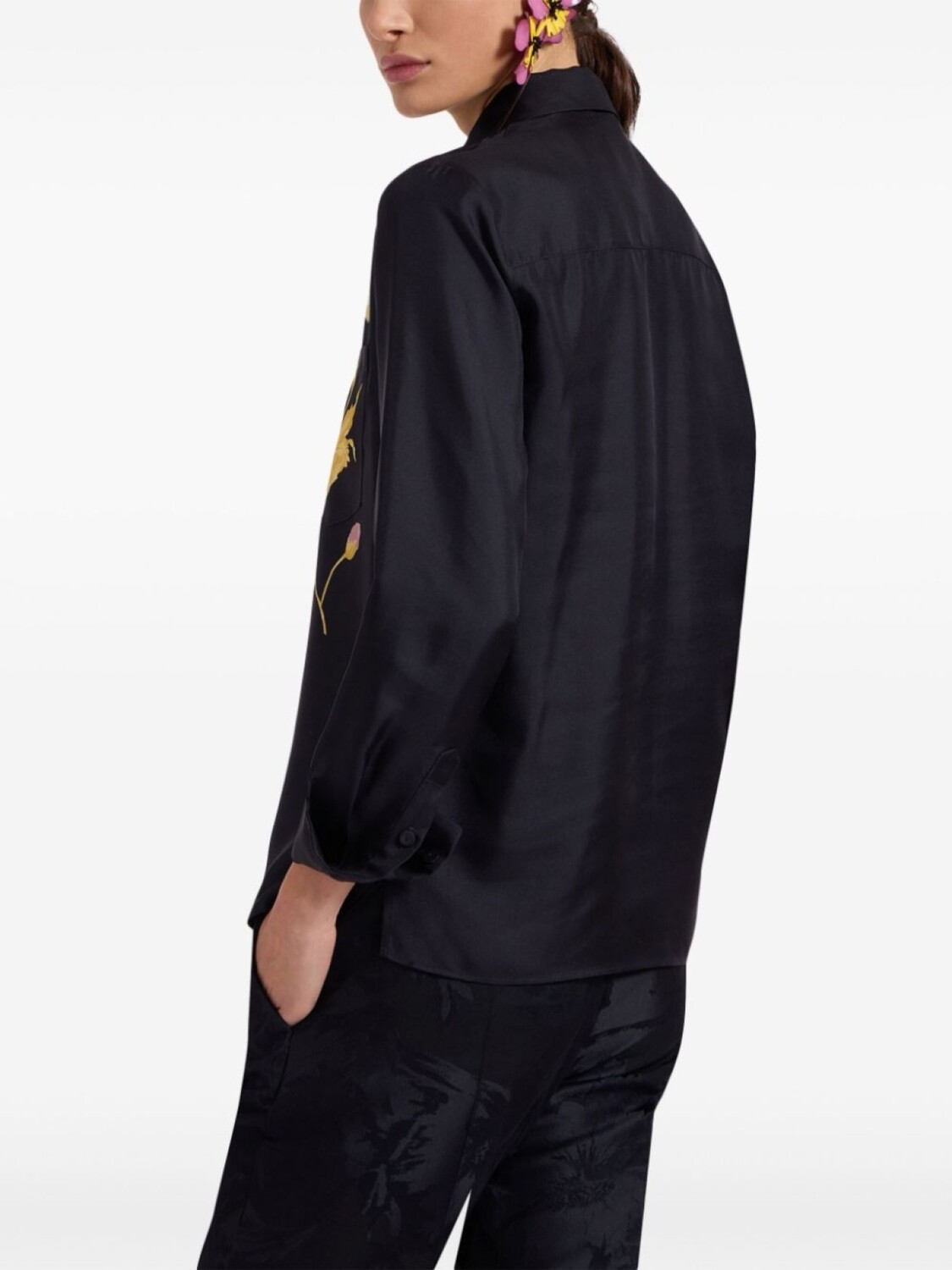 Черный, застежка на пуговицах спереди, нагрудный накладной карман, цветочный принт