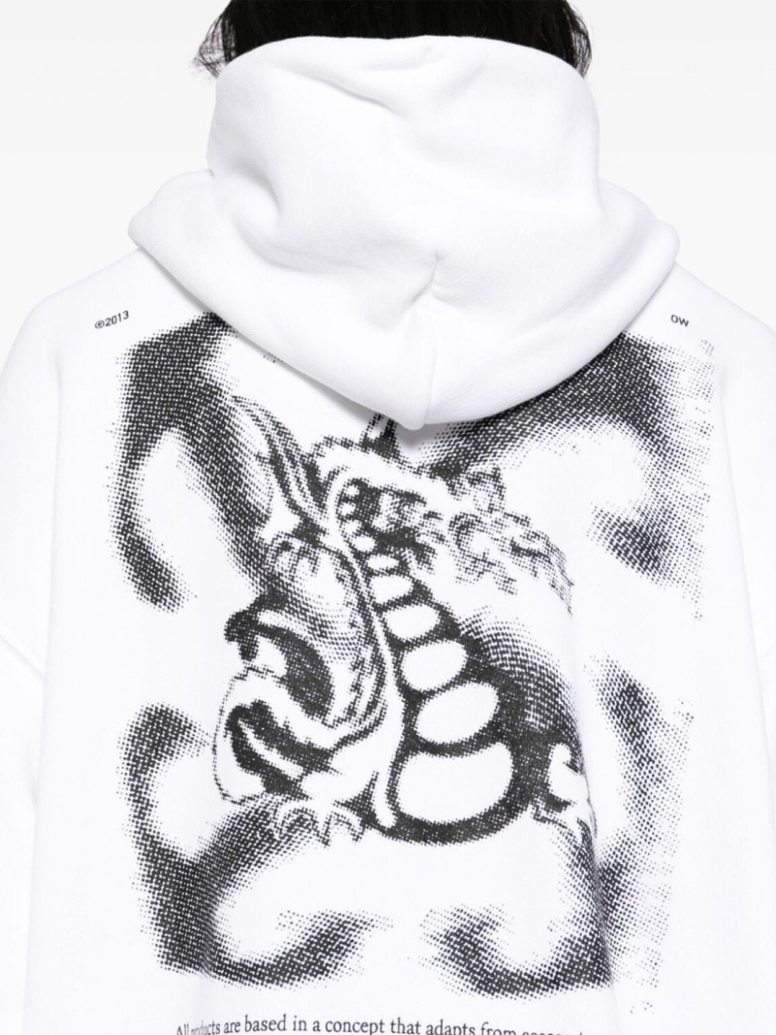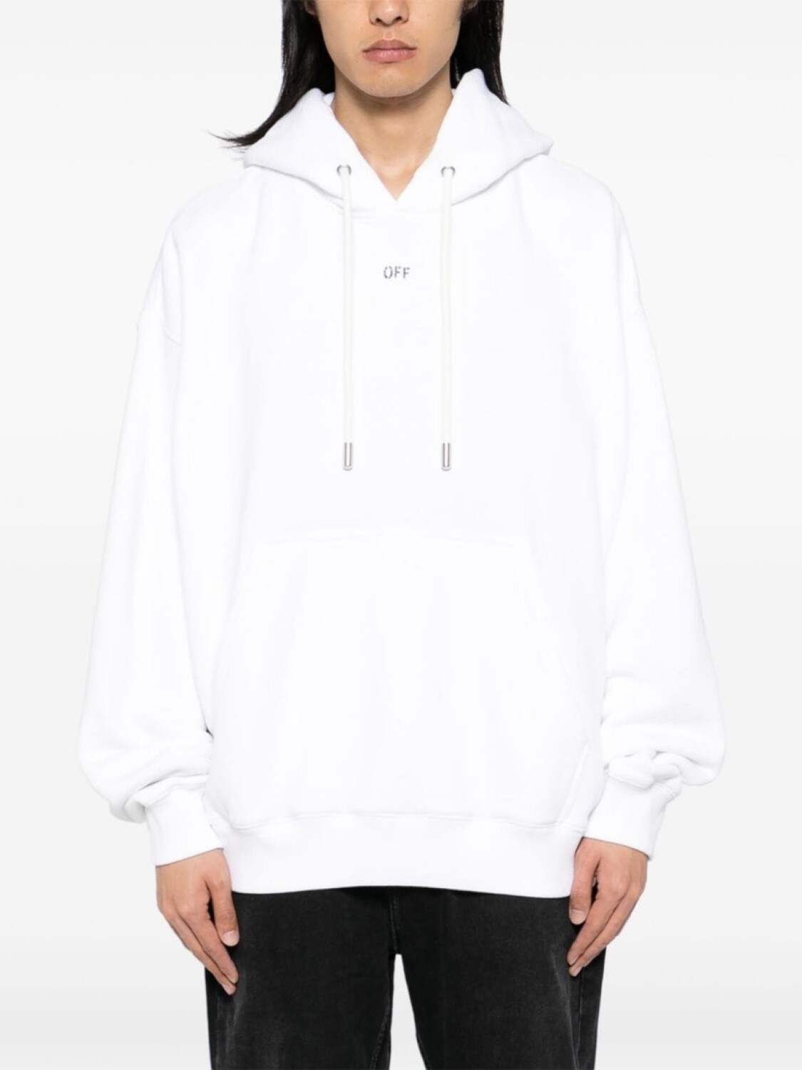 Белый хлопковый капюшон на завязках, логотип с принтом спереди и сзади, передний карман-кенгуру, длинные рукава, спущенная линия плеча, ребристые манжеты и подол