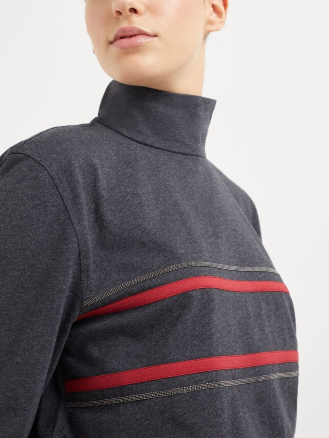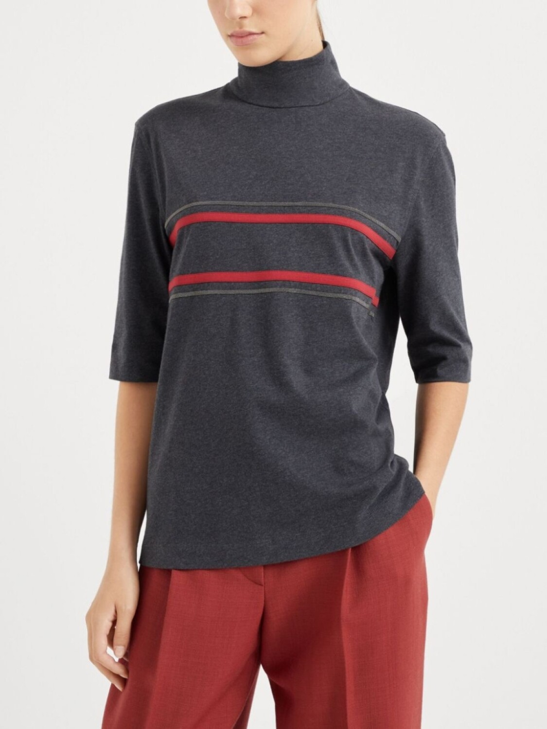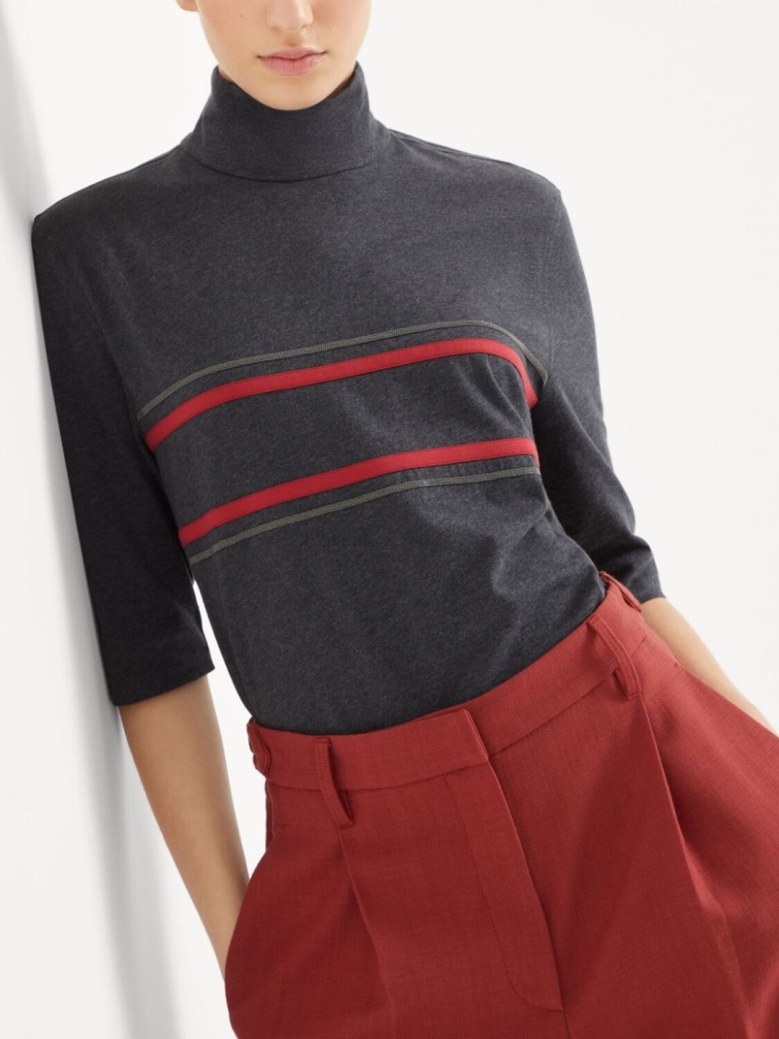 Хлопковый топ с полосками Brunello Cucinelli, серый
