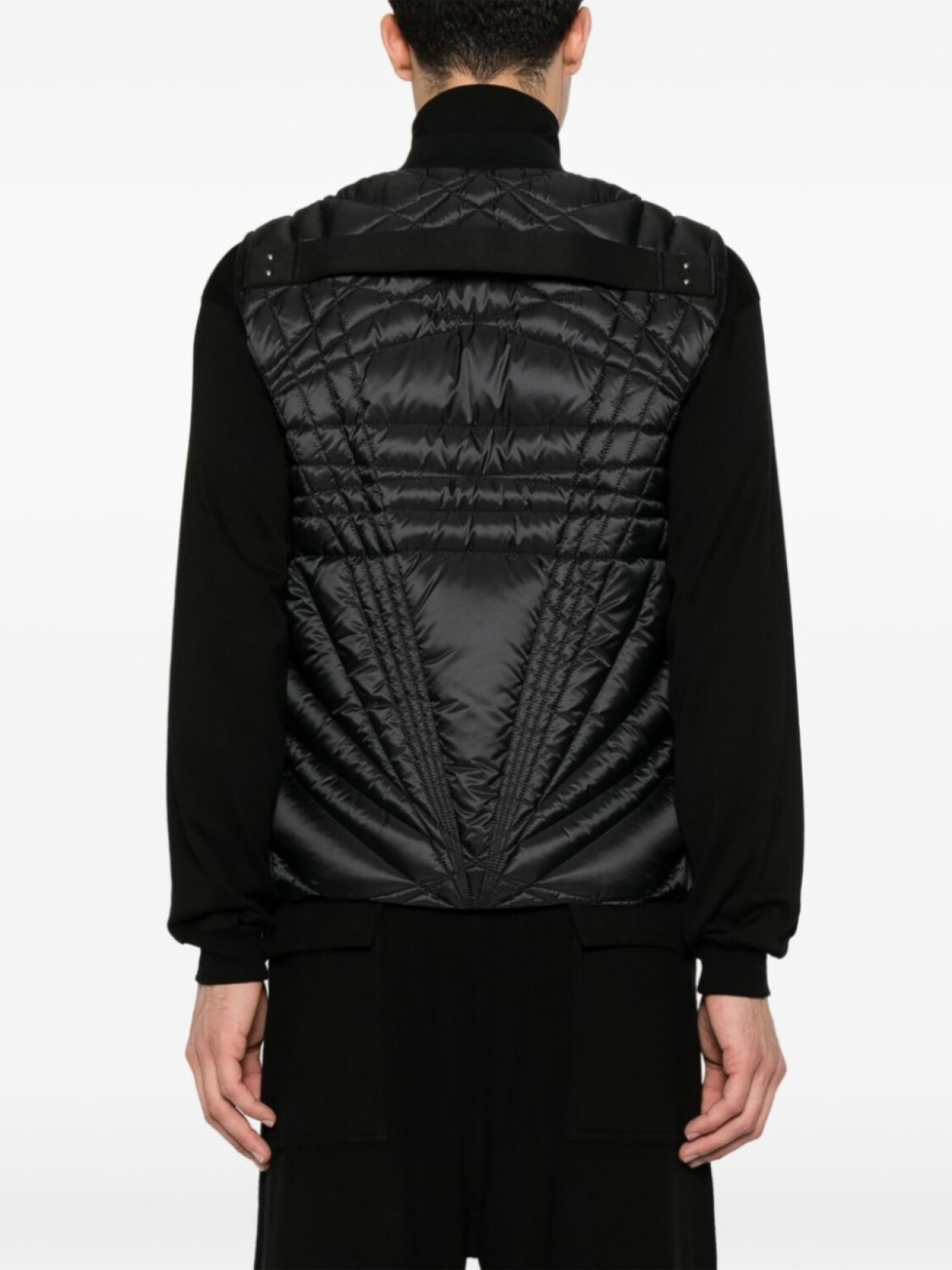 Подробнее о товаре: • черный • плотный внешний материал • дутый материал • наполнитель из пуха • стеганый узор в виде пентаграммы • застежка на молнии спереди • воротник-стойка в рубчик • без рукавов • два боковых кармана с застежкой на кнопки • нашивка с логотипом сбоку • ремешок сзади • два внутренних накладных кармана • цельная подкладка • прямой подол • Это унисекс-модель. Обратите внимание, что для нее используется мужская размерная сетка.