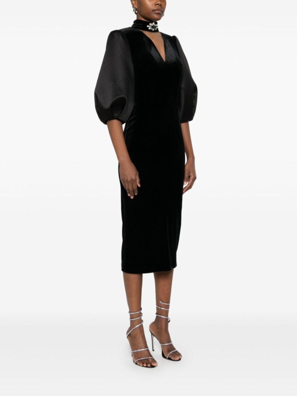 Бархатное платье миди с объемными рукавами NISSA, черный