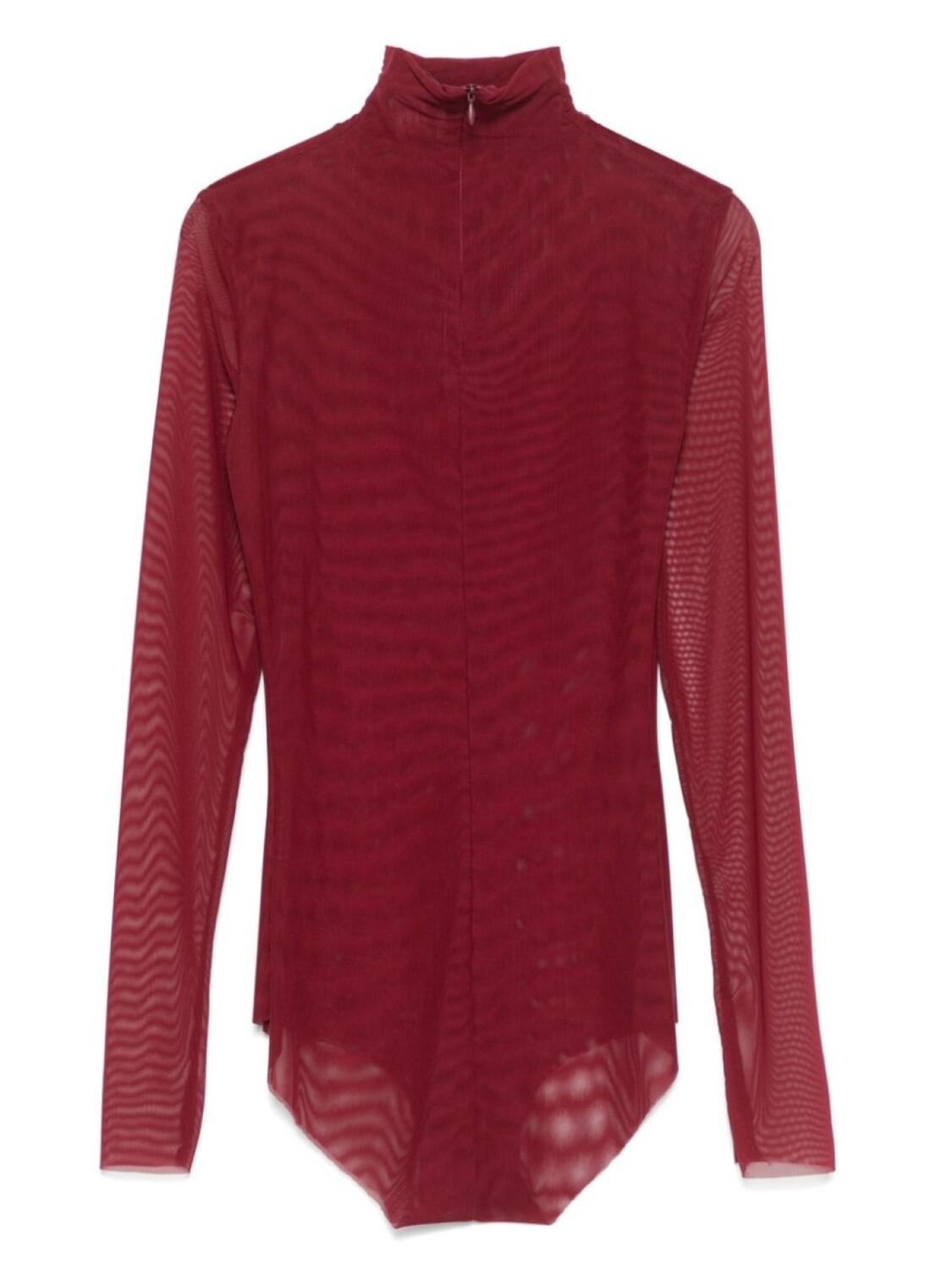 Сетчатый дизайн цвета красного вина, потайная застежка-молния сзади, потайная застежка на кнопки, воротник-стойка, длинные рукава, необработанный край