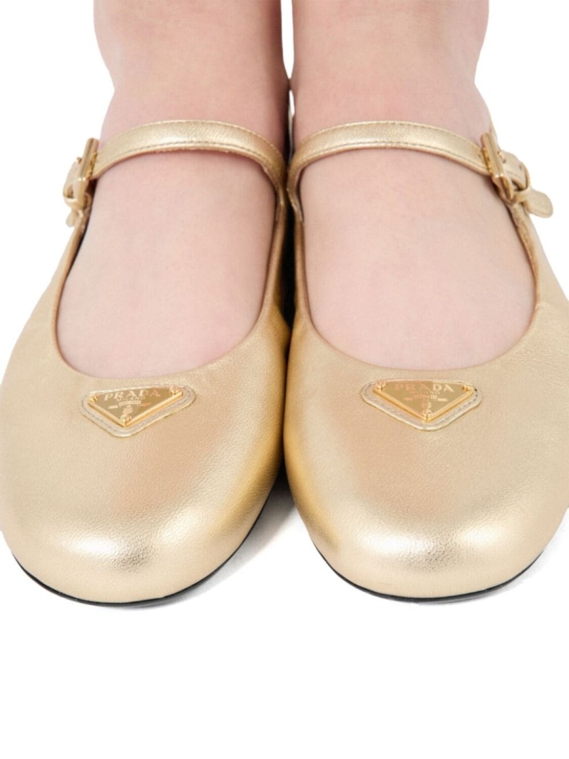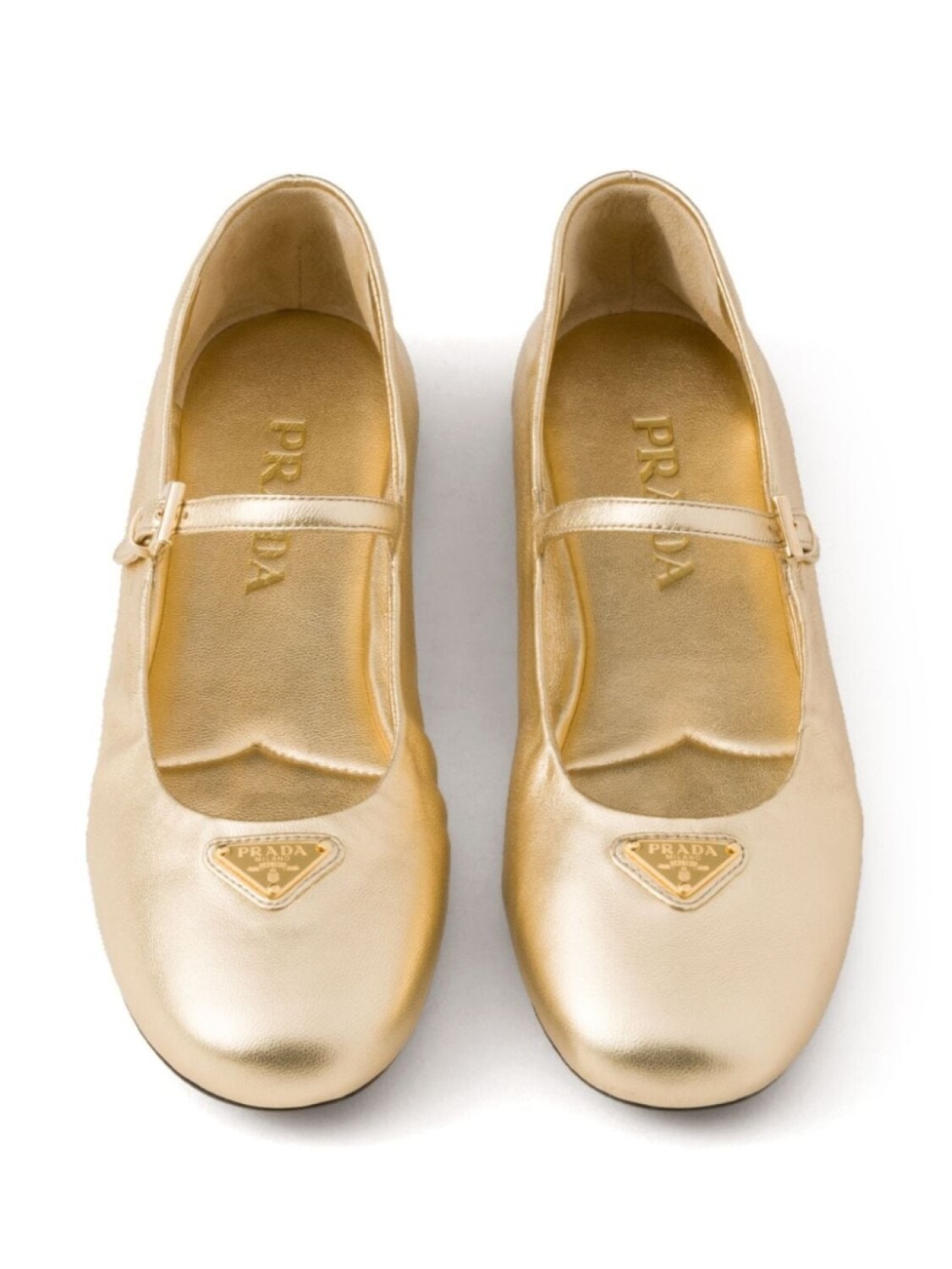 Кожаные балетки Prada, золотой