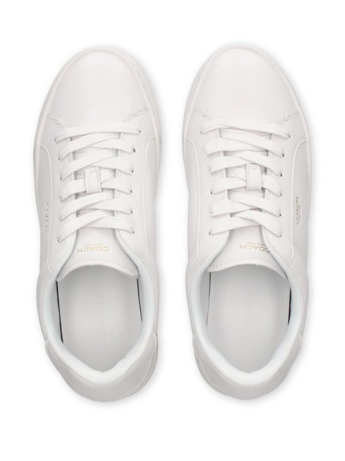 Застежка на шнуровку спереди из белой кожи, логотип сбоку и на язычке, логотип на подошве, круглый носок, фирменная стелька, плоская резиновая подошва