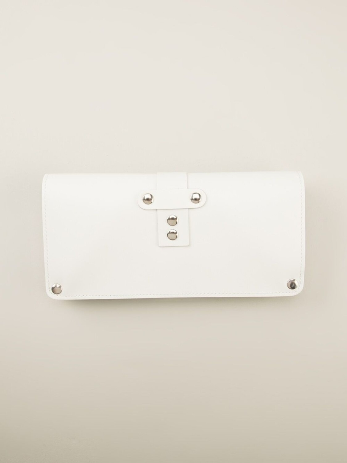 Белый, телячья кожа, откидной верх, застежка на пряжке, основное отделение, внутренние отделения для карт, серебристая фурнитура
