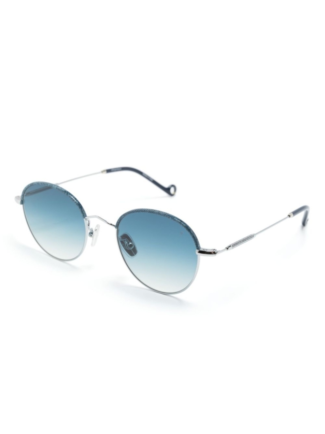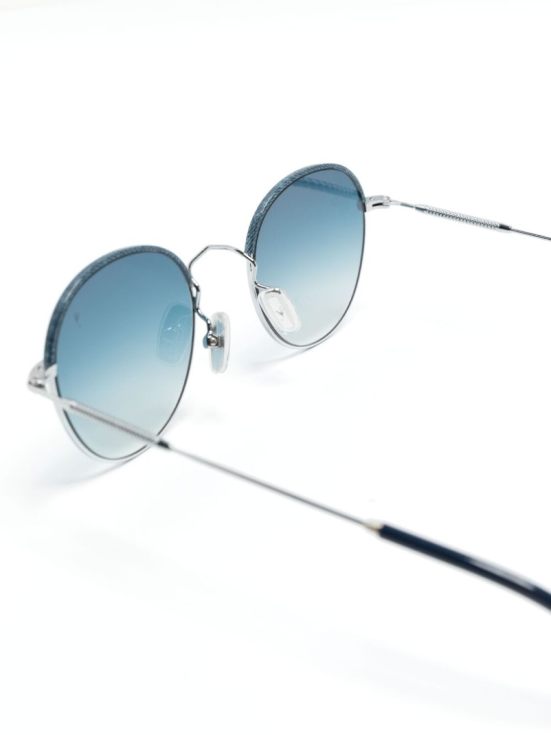 Металл, скульптурные дужки, носоупоры, дужки с закругленными концами, синие линзы, градиентные линзы, серебристый, круглая оправа, В комплект входит защитный чехол для очков.