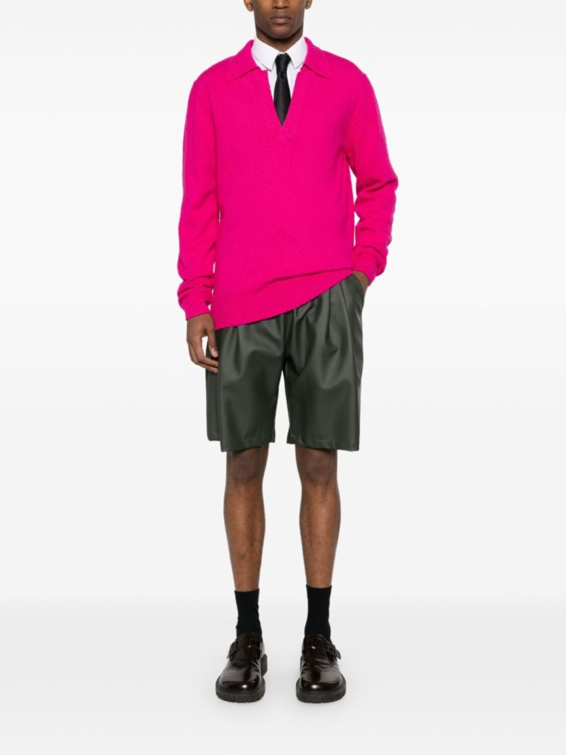 Ярко-розовый, хлопок, вязаный дизайн, ткань букле, отложной воротник, воротник с разрезом, приспущенные плечи, длинные рукава, подол и манжеты в рубчик, прямой подол