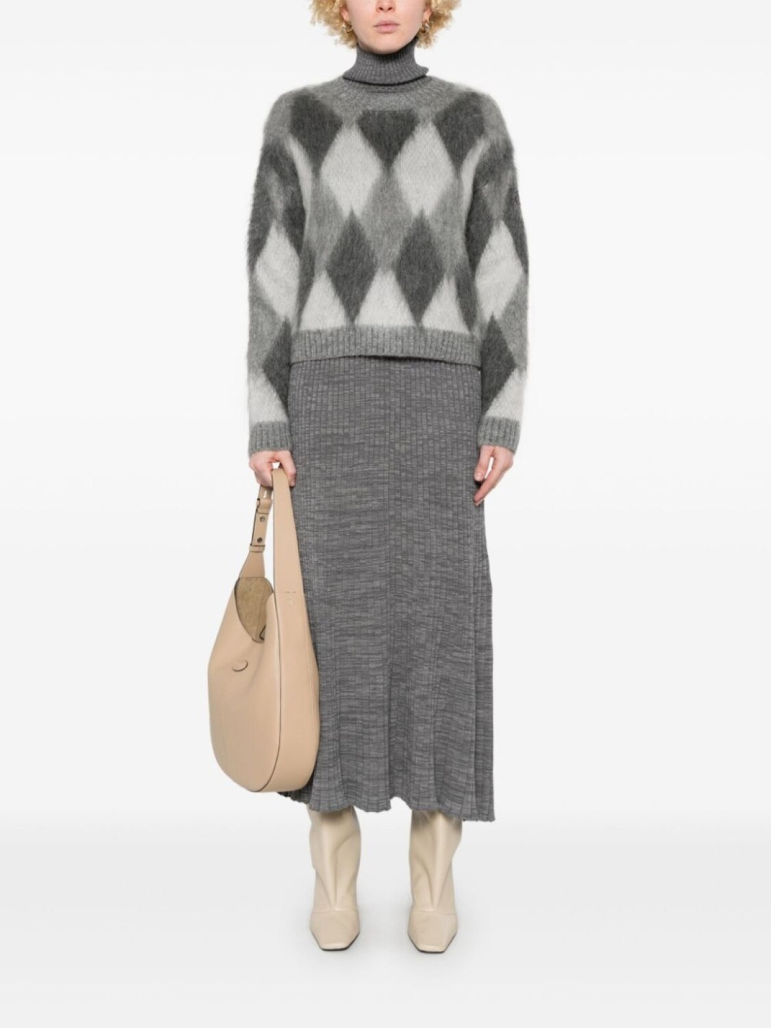 Свитер в клетку ромбик Moncler, серый