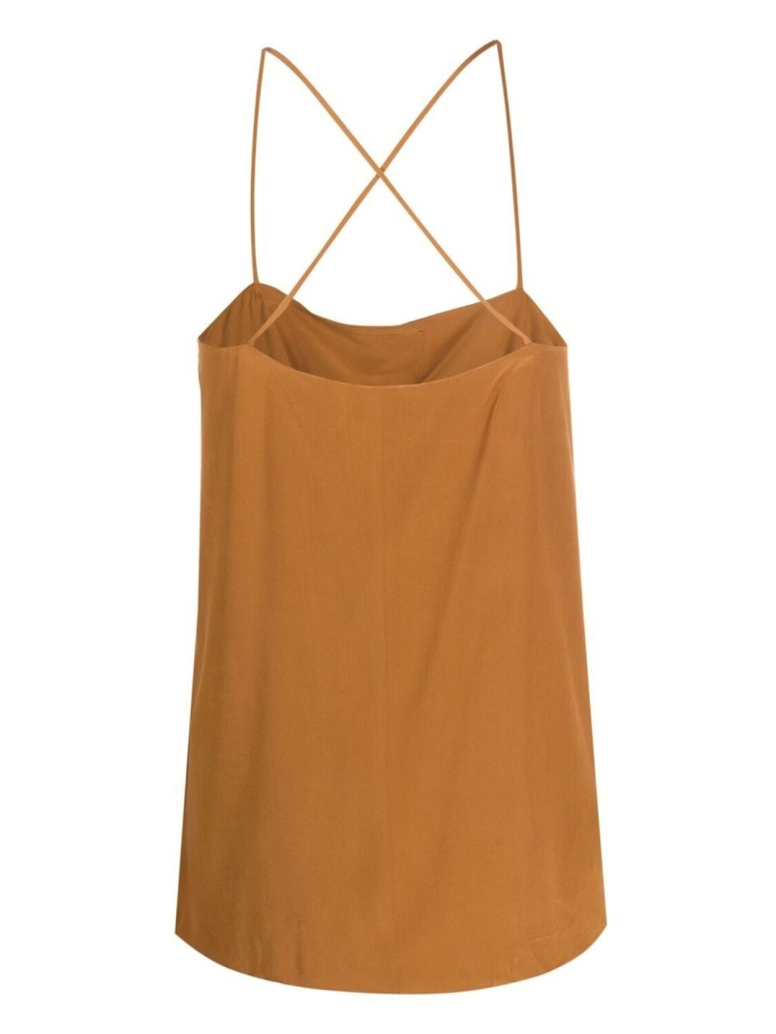 Карамельный, шелк, декоративные пуговицы, перекрестные ремешки, квадратный вырез, тонкие бретели и прямой подол.