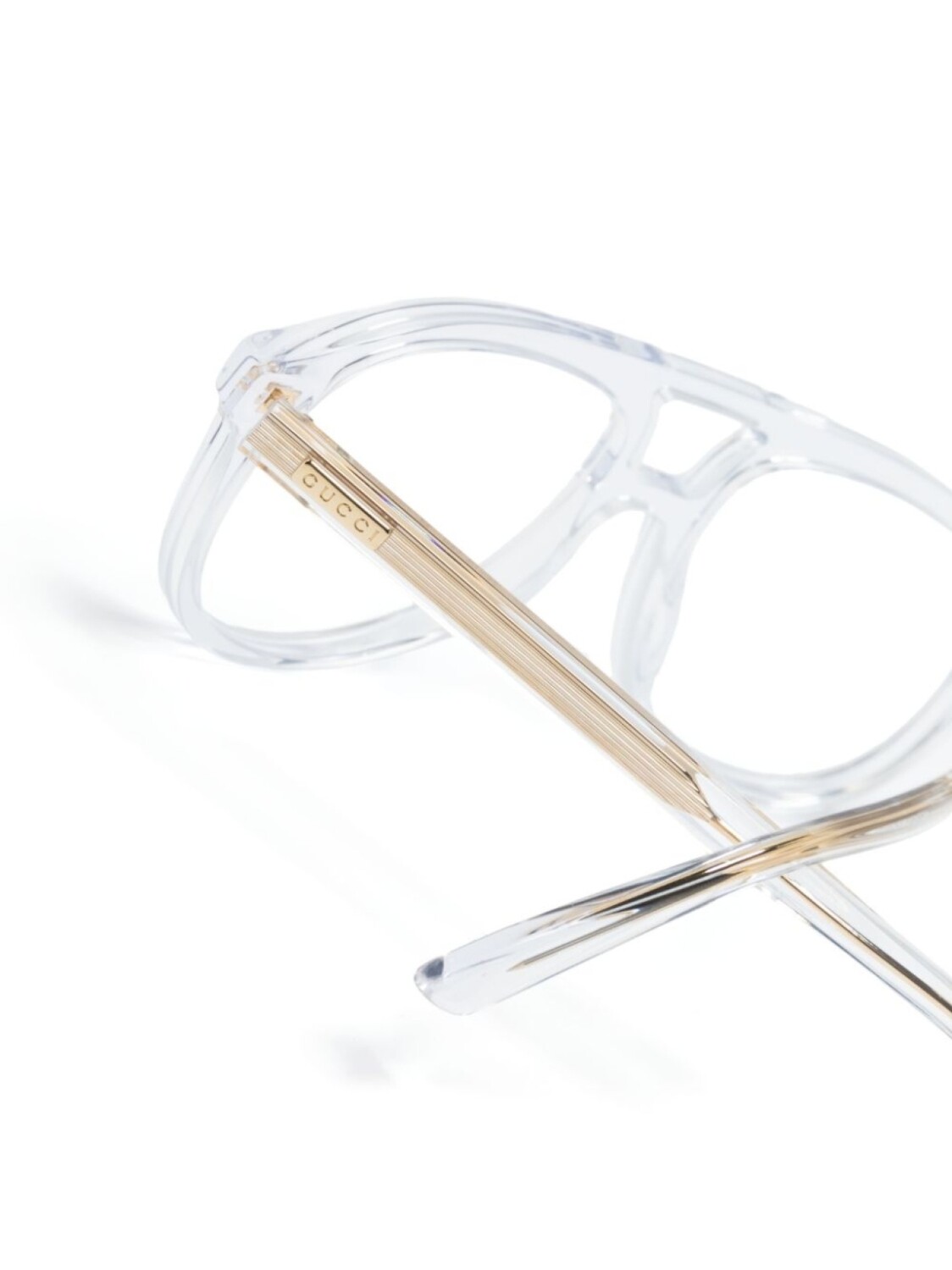 Золотистый, ацетат, металлический логотип, прозрачная оправа, оправа «пилот», прозрачные линзы, прямые дужки и дужки с закругленными концами. В комплект входит защитный чехол для очков. Обратите внимание, что на FARFETCH продаются оправы с линзами без диоптрий.