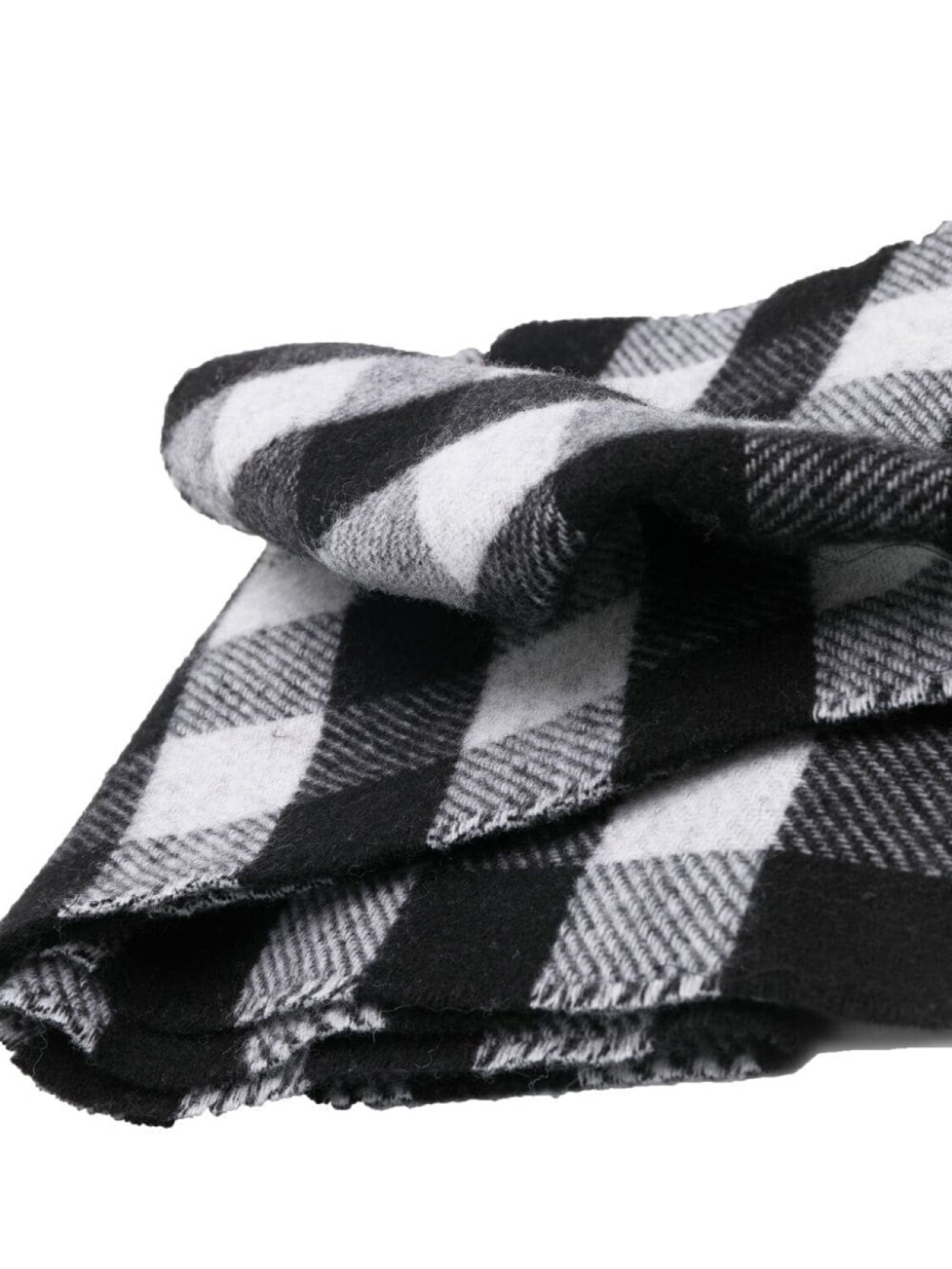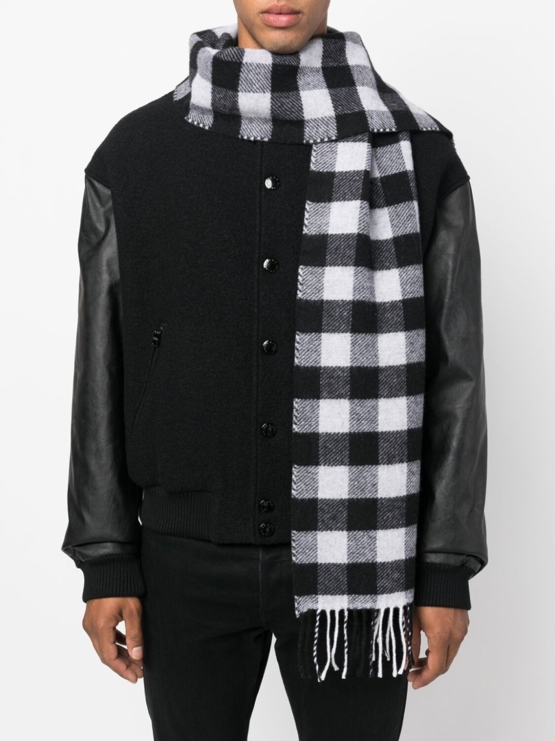 Черный/белый, смесовая шерсть, клетчатый узор, края с бахромой и длинная модель.