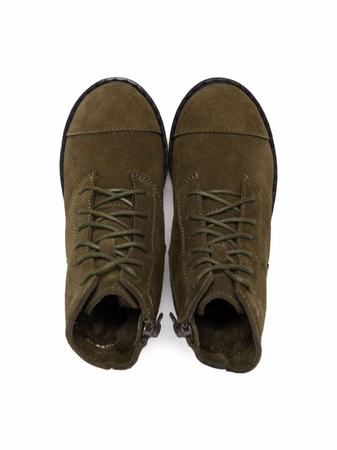 Длина по щиколотку, закругленный носок, шнуровка спереди, подкладка из овечьей шерсти, застежка на молнии сбоку и плоская резиновая подошва.