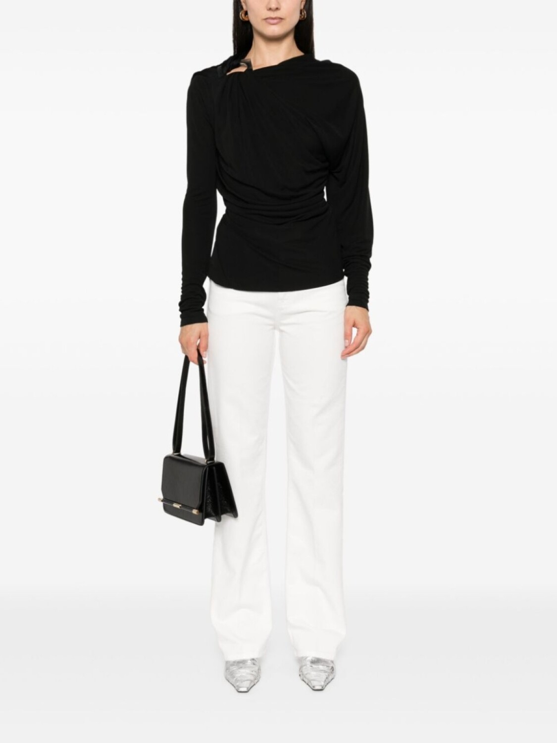 Драпированный топ с длинными рукавами Victoria Beckham, черный 68 681₽