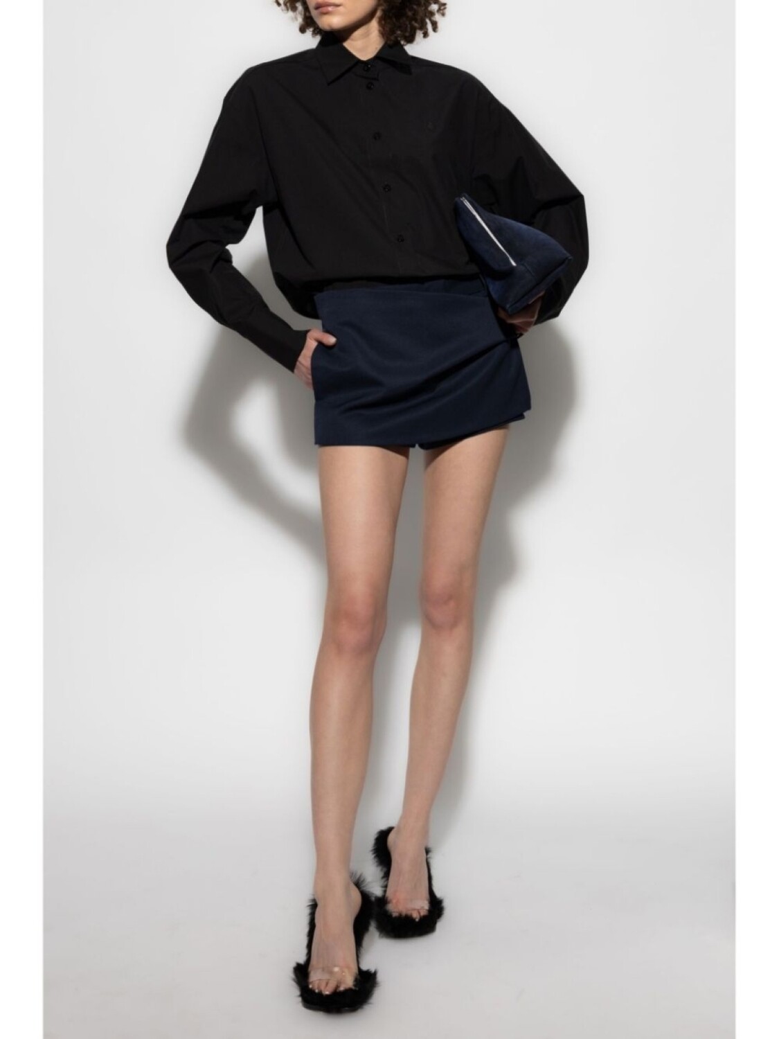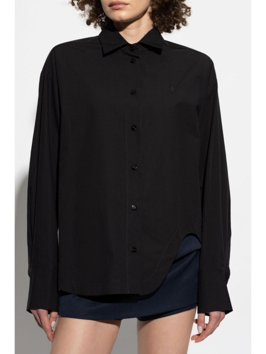 Черный спереди застежка на пуговицы классический воротник манжеты на пуговицах рукава разрез сбоку