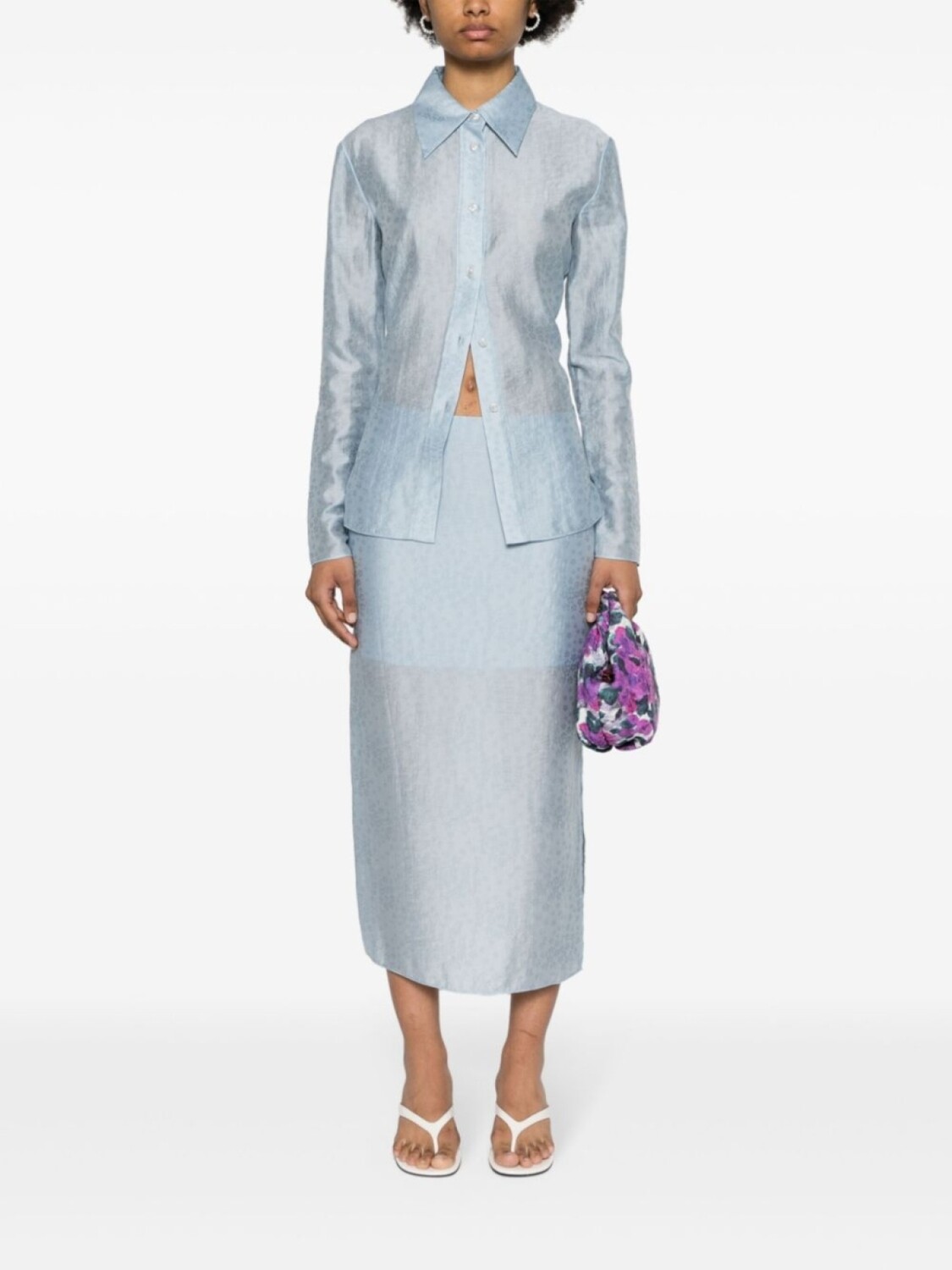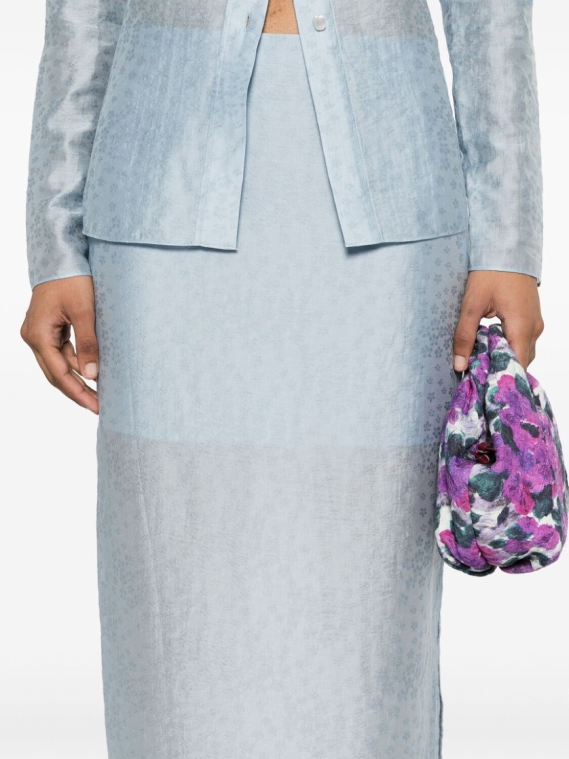 Голубой, смесовый TENCEL, цветочная вышивка, боковой разрез, прямой подол, частичная подкладка, потайная застежка на молнии сбоку, Этот товар как минимум на 50% состоит из материалов, которые признаны более безопасными для окружающей среды, и/или произведены с использованием методов, которые помогают сократить потребление воды и химических веществ., Узнать больше о том, какие товары получают отметку «Ответственный выбор», можно здесь.