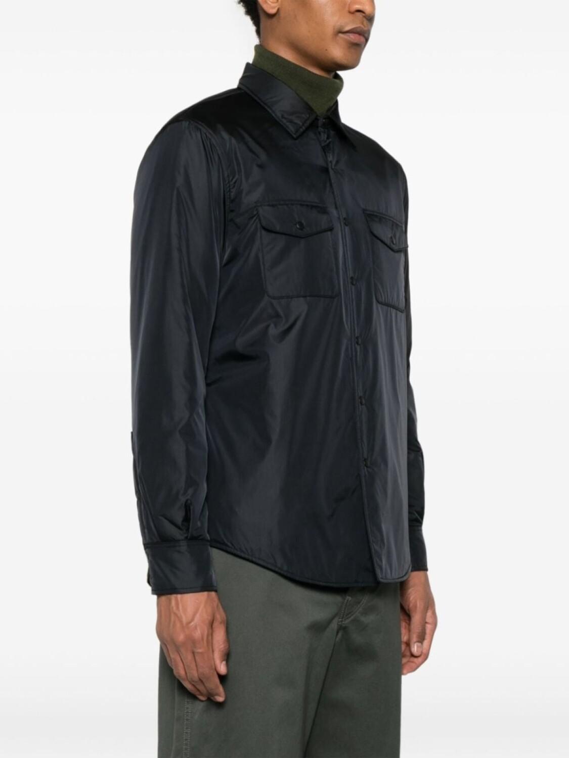 Черная застежка на кнопки спереди классический воротник длинные рукава нагрудные карманы с клапанами манжеты на кнопки закругленный подол
