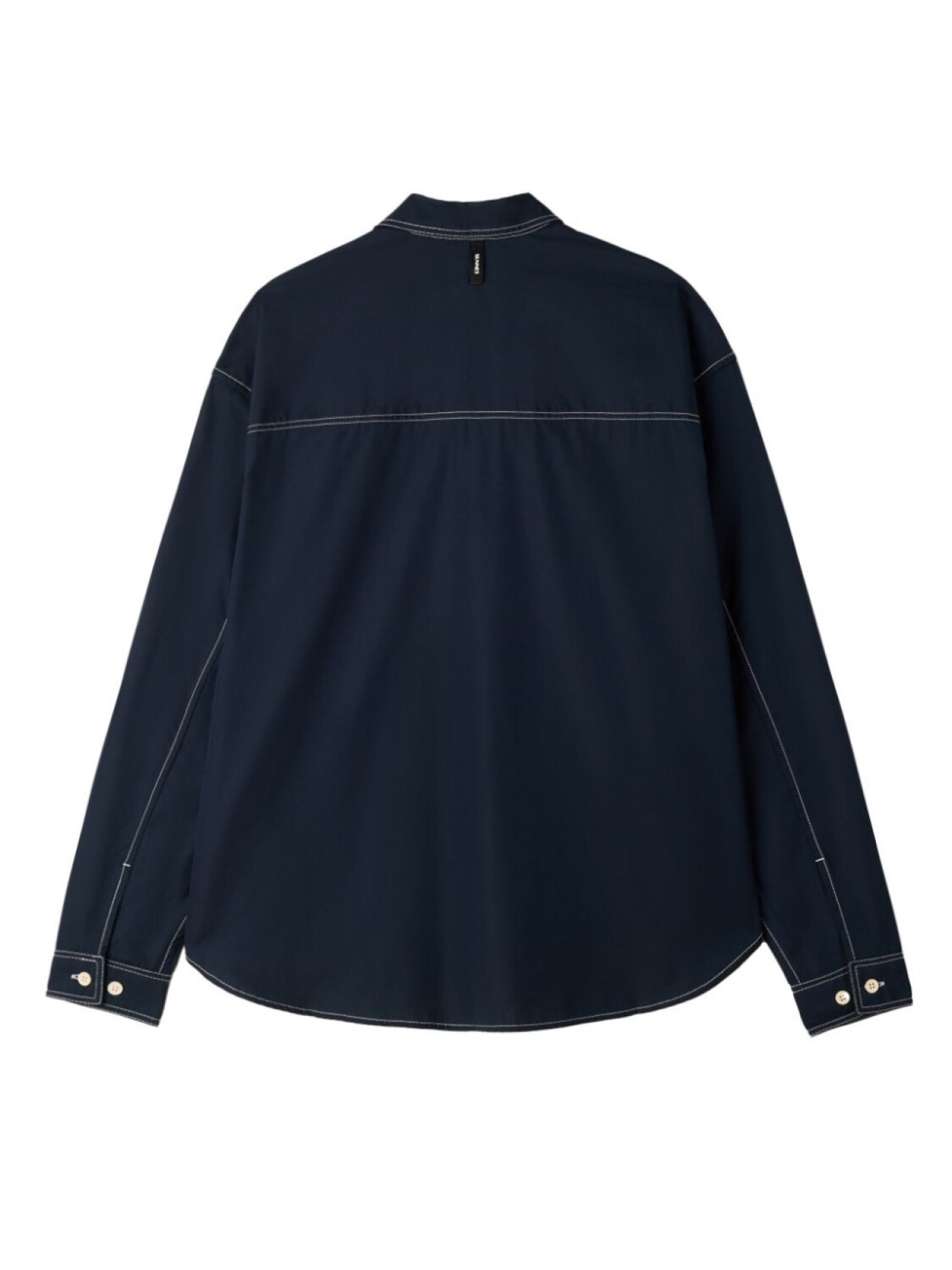 Застежка на пуговицы темно-синего цвета спереди, два накладных кармана на груди, нашивка с логотипом сзади. При покупке этой вещи унисекс имейте в виду, что она соответствует стандартным мужским размерам.
