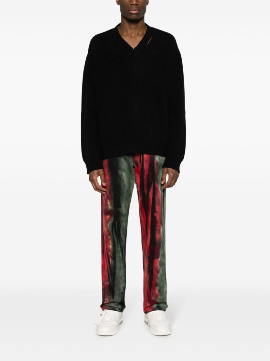 Расцветка Core Black, необработанная шерсть, крупная вязка, вырезные детали, V-образный вырез и длинные рукава.