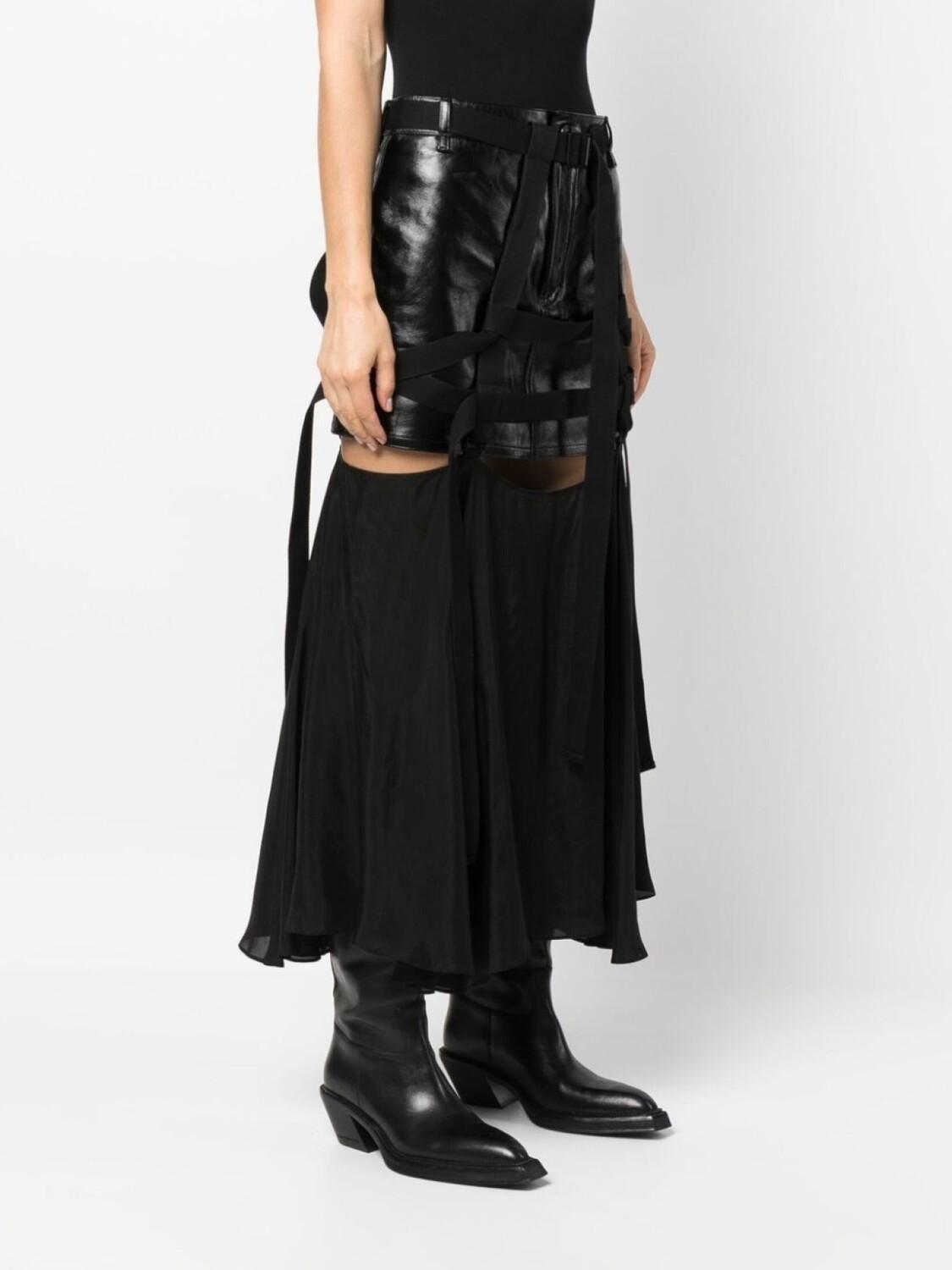 Кожаная юбка-миди с ремешками 032c, черный
