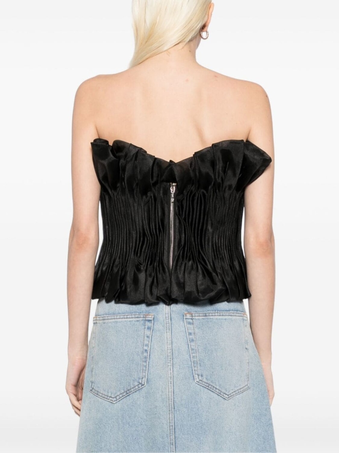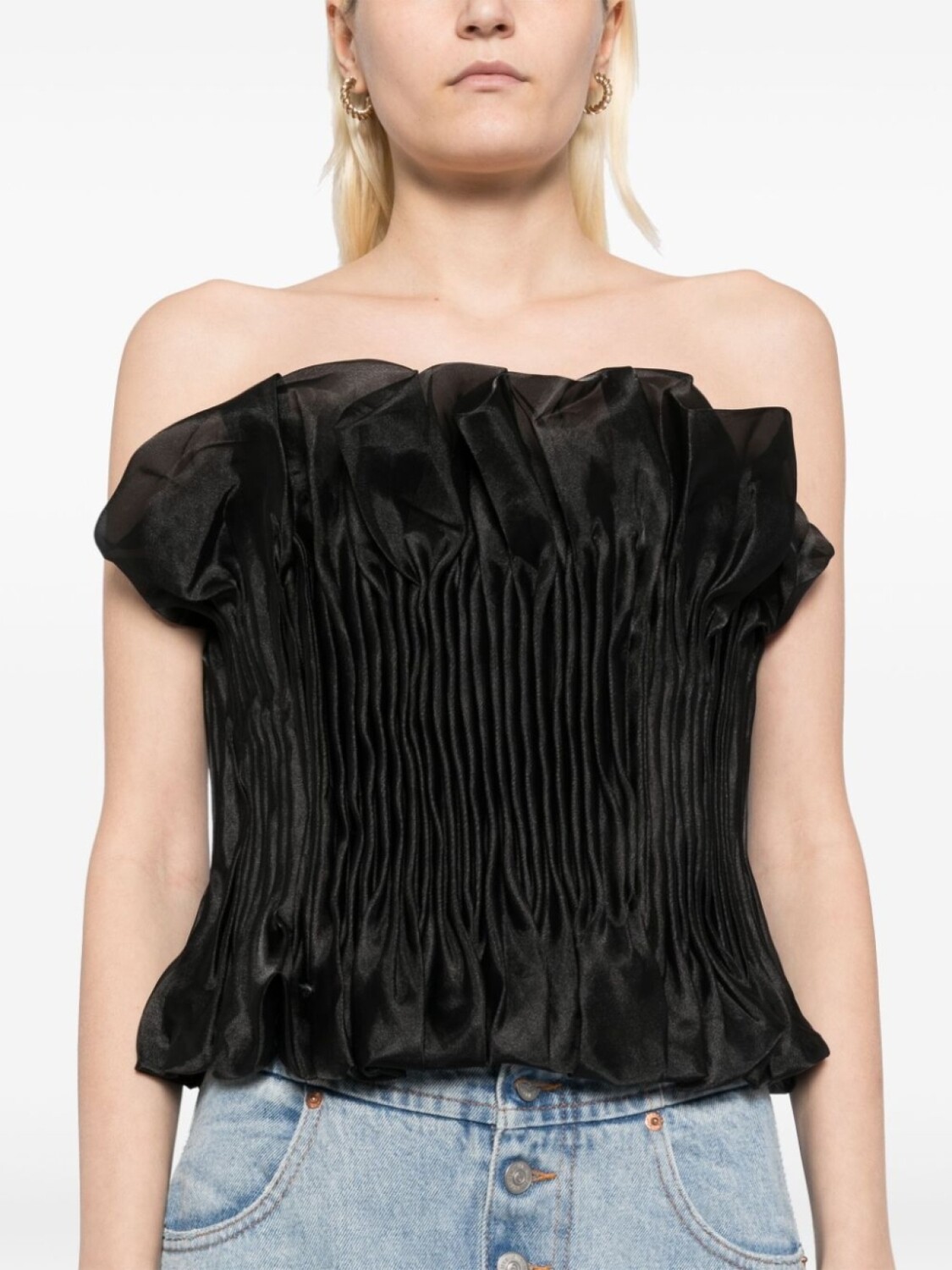 Черный, органза, застежка на молнии сзади, без бретелей, присборенный воротник, вытачки, закругленный подол, цельная подкладка