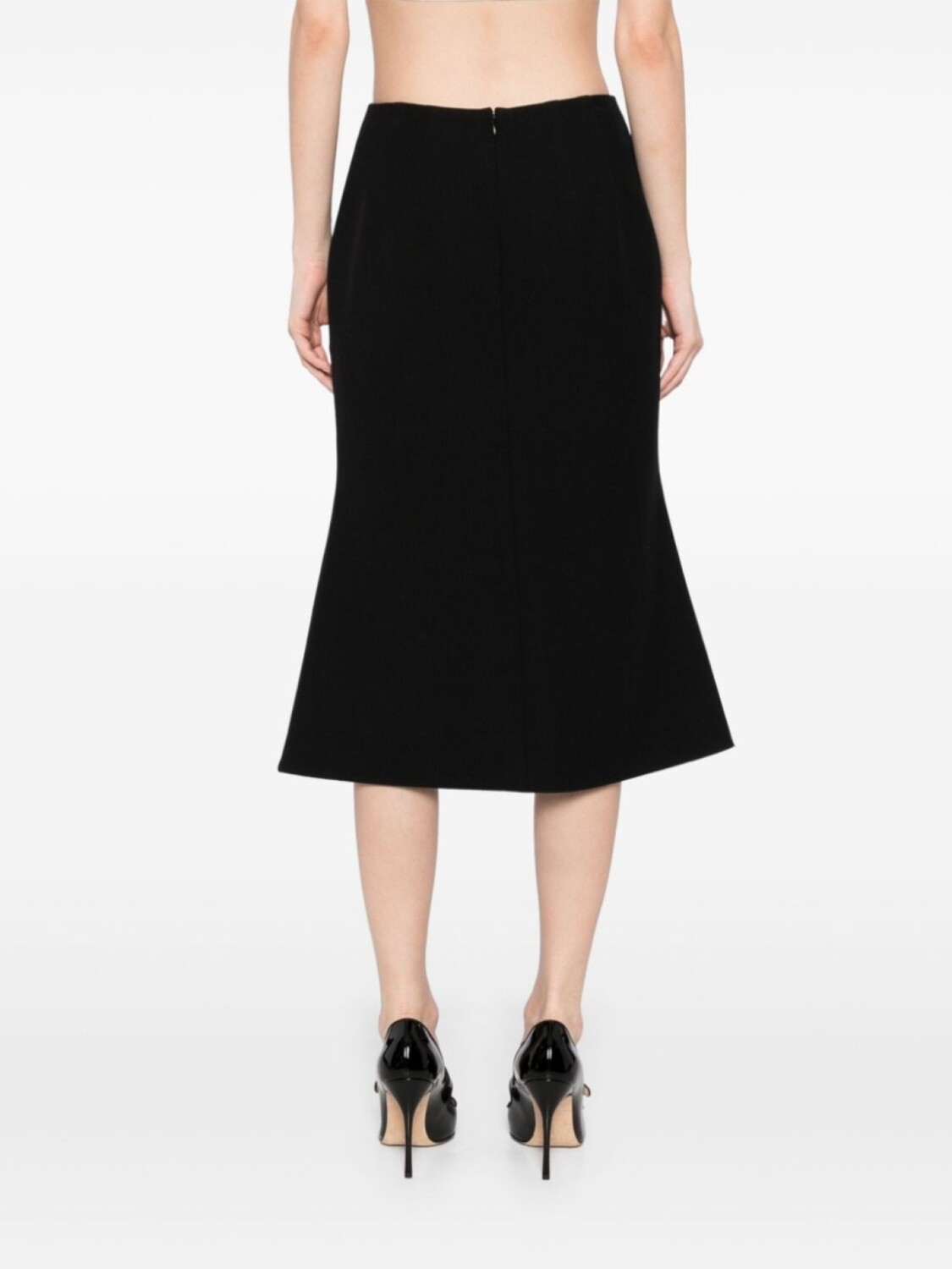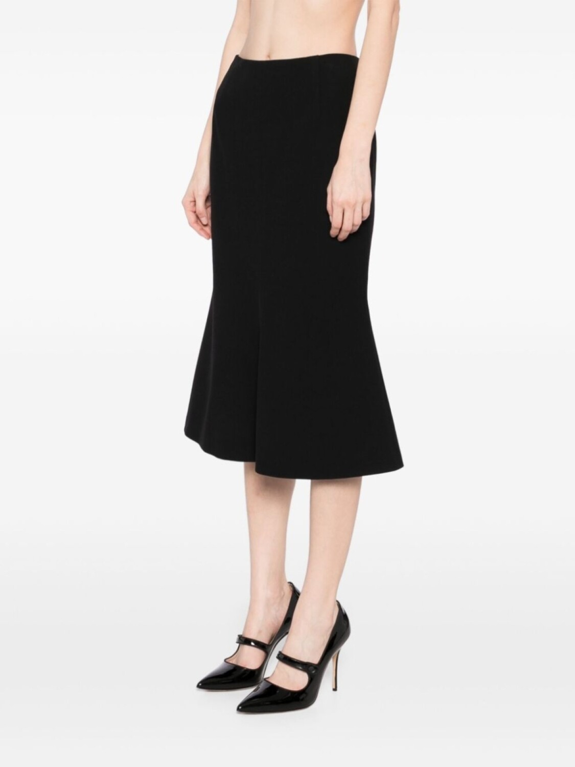 Черный, потайная застежка на крючках и молнии сзади, расклешенный подол