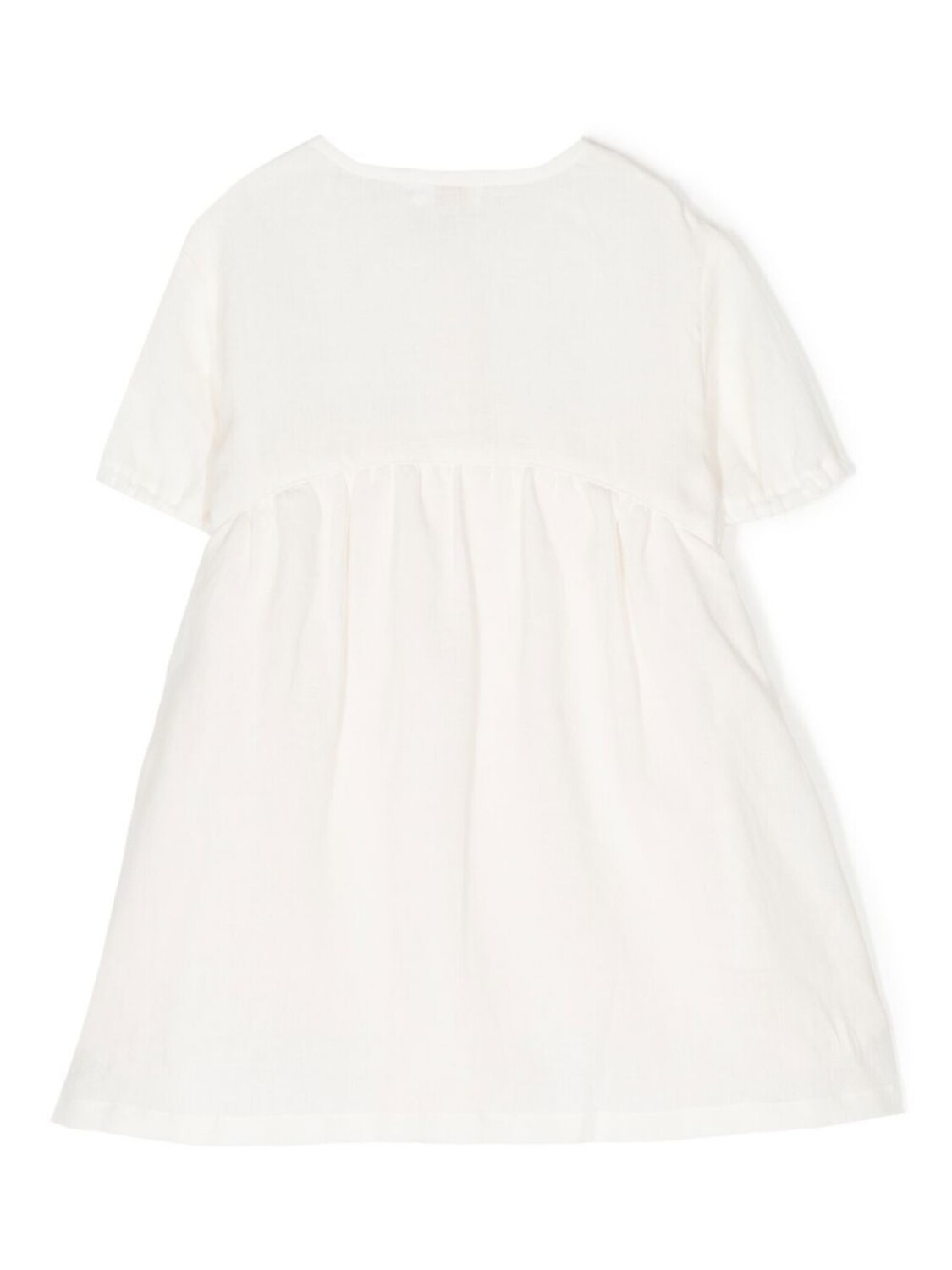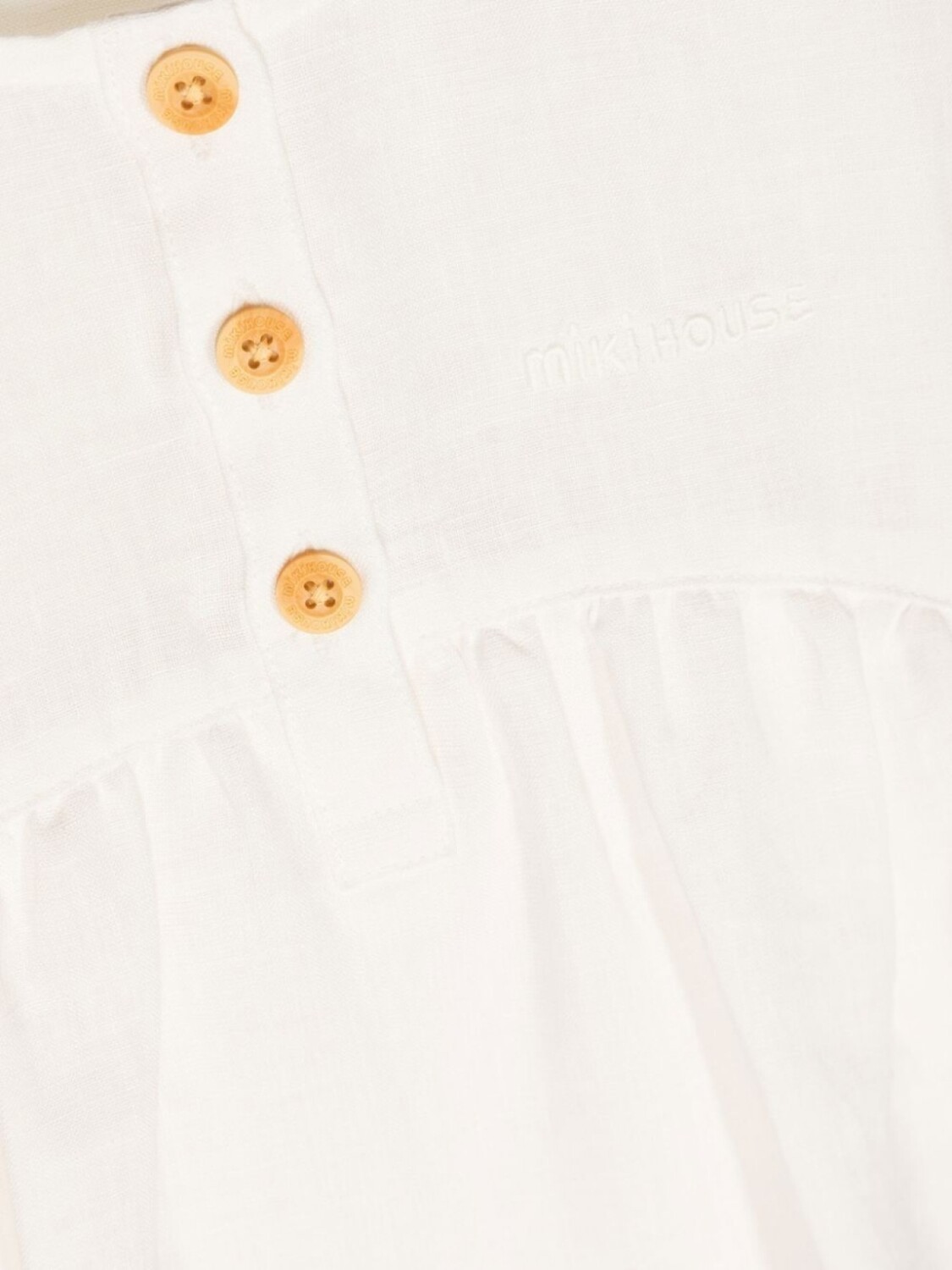 Белый, вышитый логотип на груди, U-образный вырез, короткая застежка на пуговицах спереди, дизайн со сборками, А-образный силуэт, короткие рукава и эластичные манжеты. Ответственный выбор: Этот товар как минимум на 50% состоит из материалов, которые признаны более безопасными для окружающей среды или сертифицированы независимыми организациями.