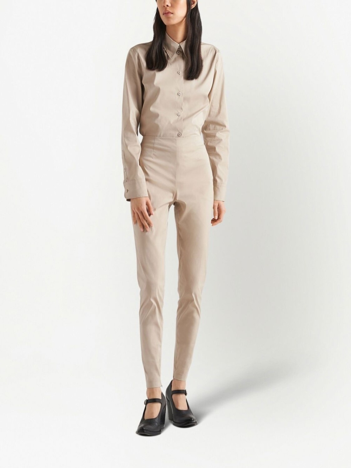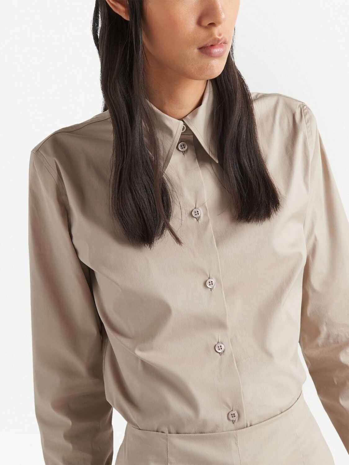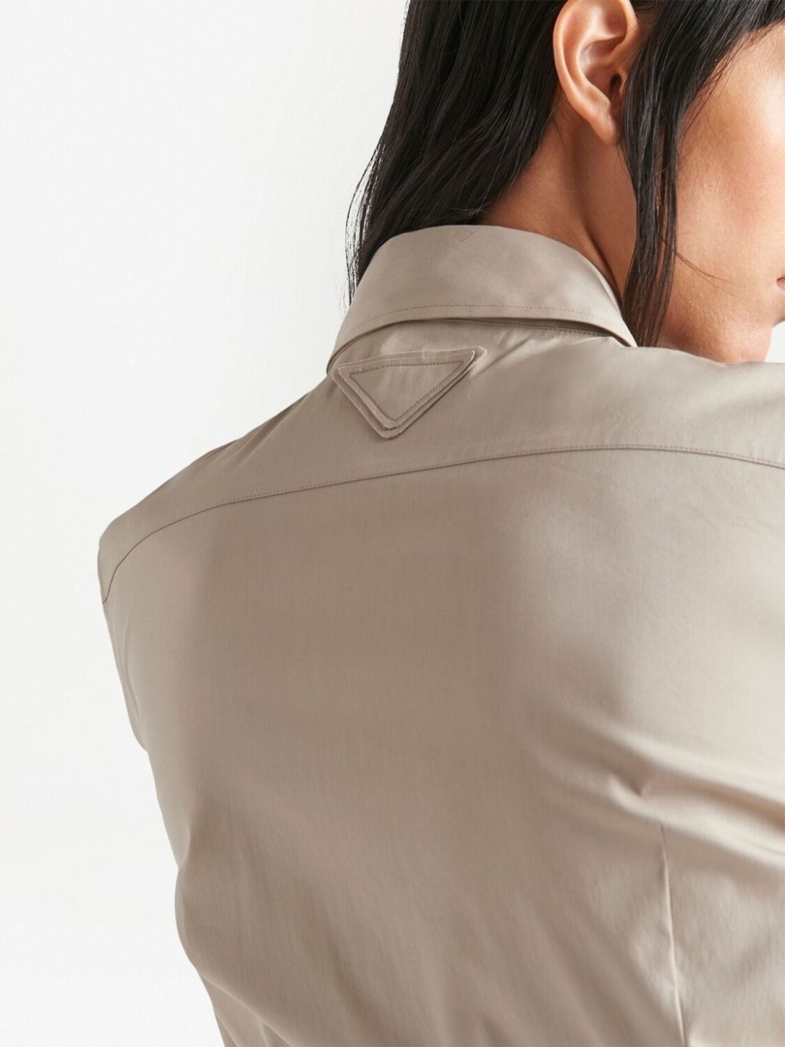 Поплиновая рубашка с логотипом Prada, нейтральный цвет