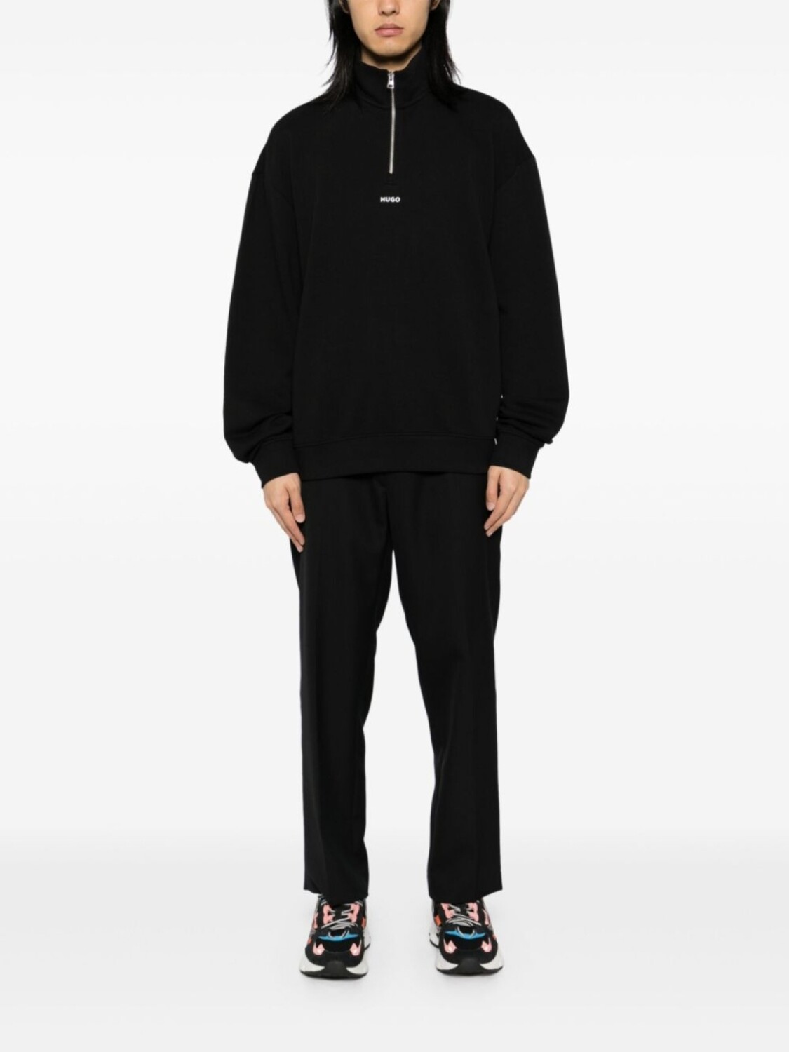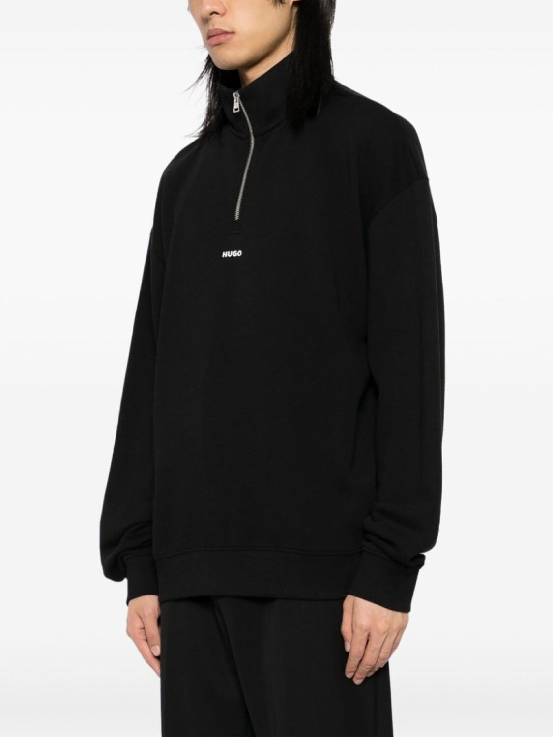Толстовка с воротником на молнии и логотипом HUGO, черный