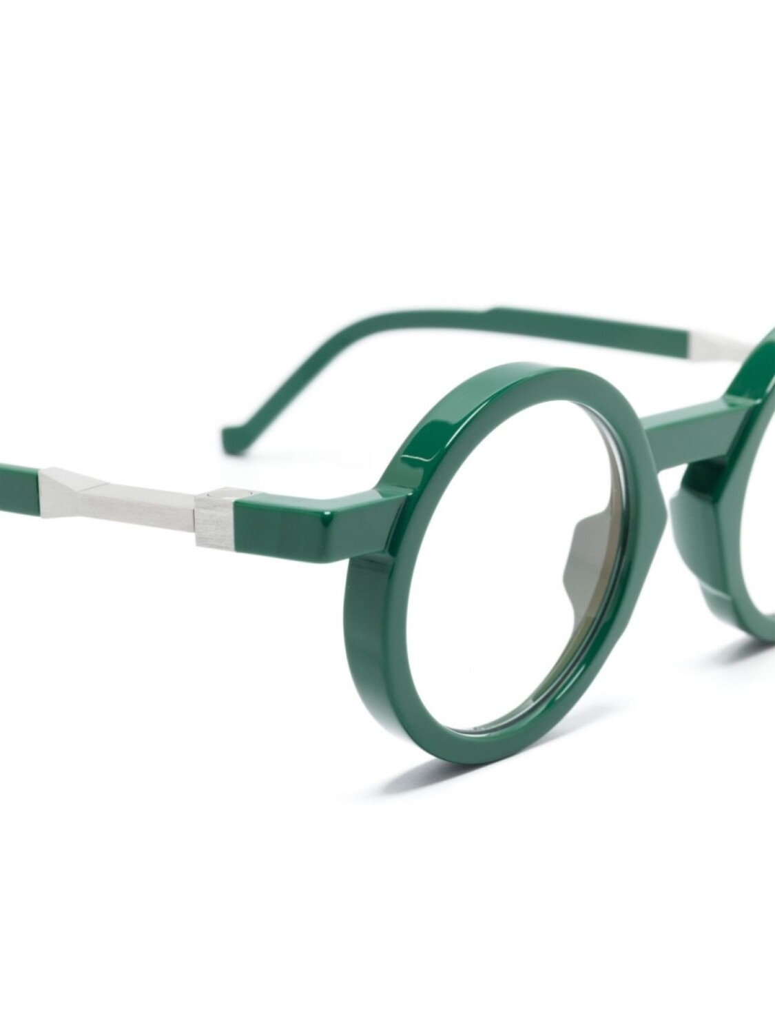 Зеленый, ацетат, алюминий, круглая оправа, прозрачные линзы, завышенный мост, прямые дужки, дужки с закругленными концами, Обратите внимание, что на FARFETCH продаются оправы с линзами без диоптрий.