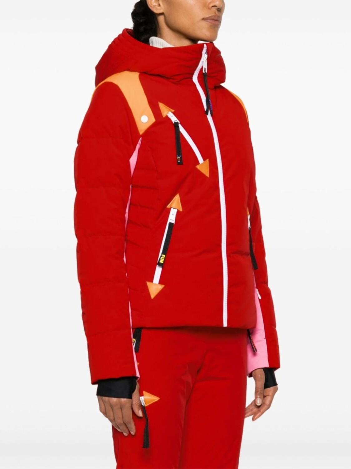 Подробнее о товаре: • красный/разноцветный • наполнитель из смеси пуха и пера • дутый материал • дизайн колор-блок • застежка на молнии спереди • классический капюшон • воротник-труба • длинные рукава • прорезиненный логотип на рукаве • карман с молнией на рукаве • нагрудный карман на молнии • два кармана на молнии по бокам • стеганые вставки • цельная подкладка • подол с кулиской