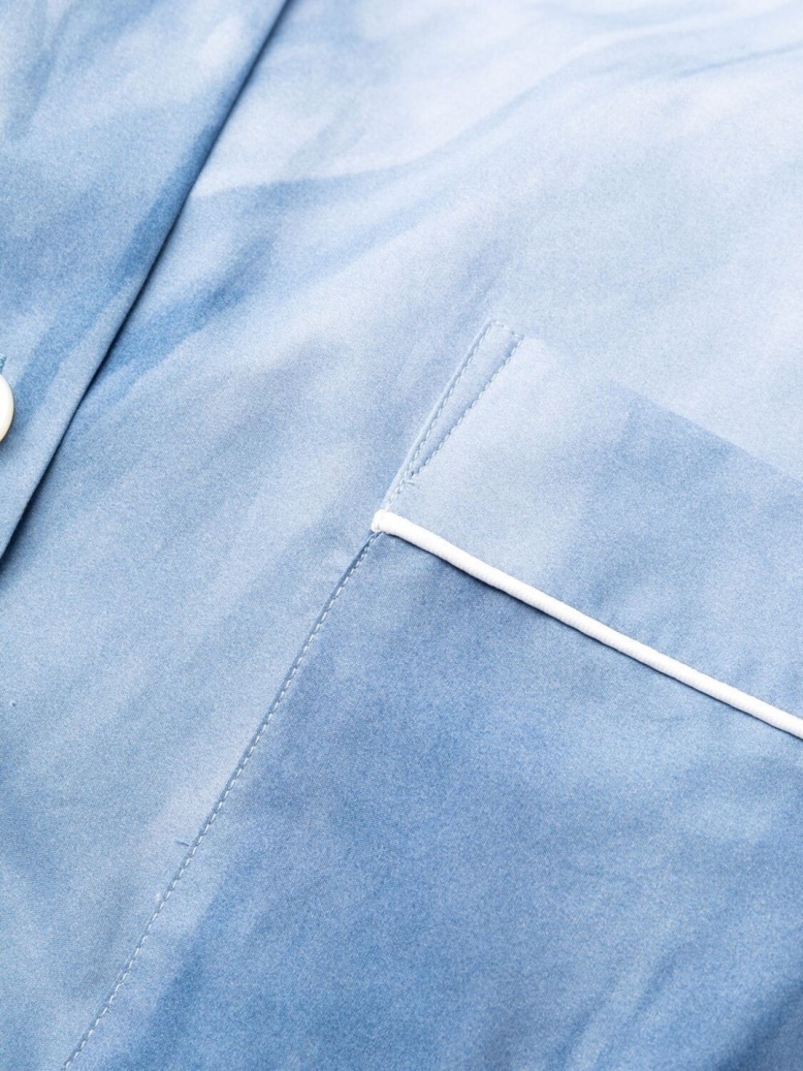 Объемная окантовка, градиентный эффект, классический воротник, застежка на пуговицах спереди, длинные рукава и нагрудный накладной карман.