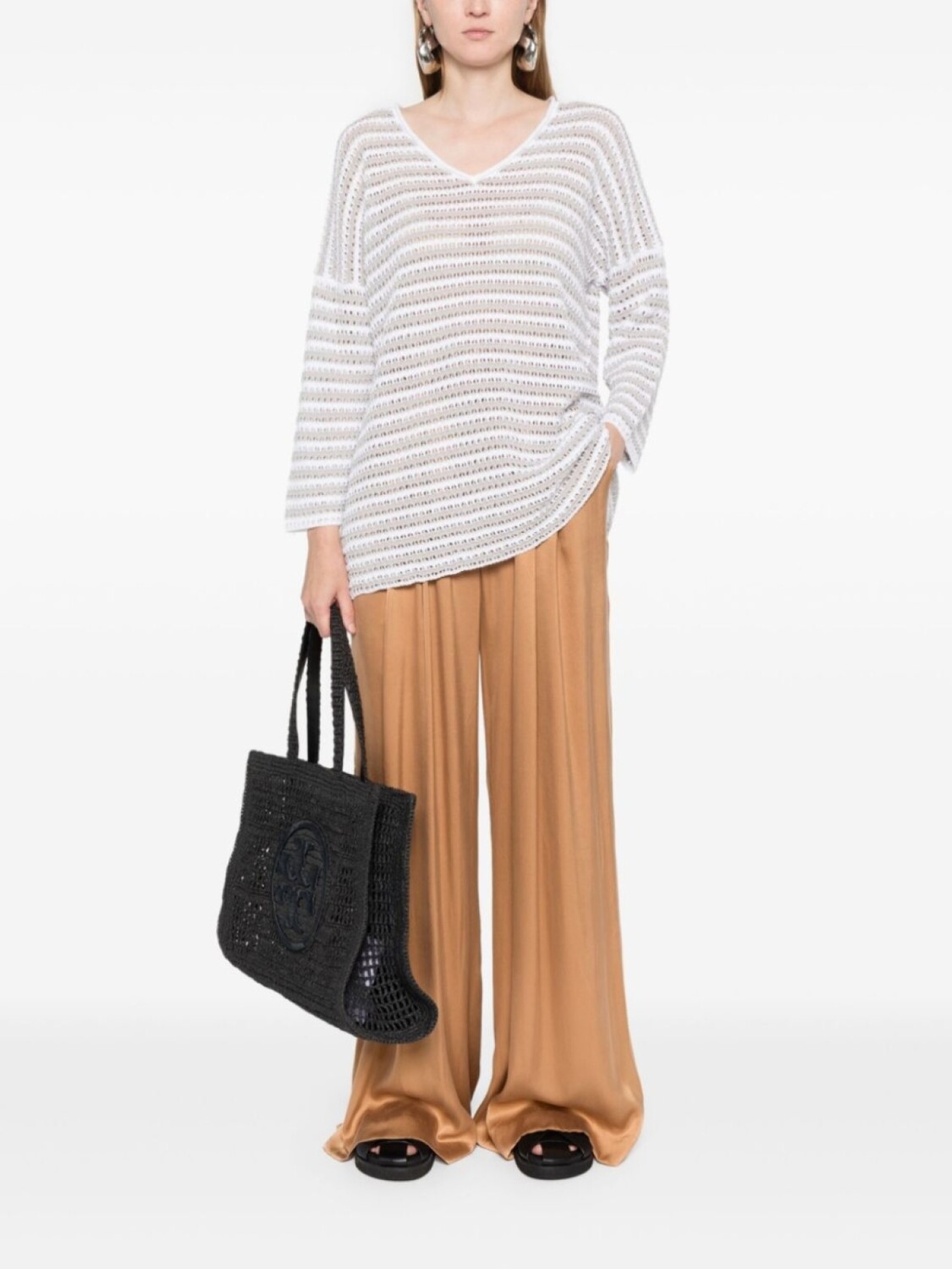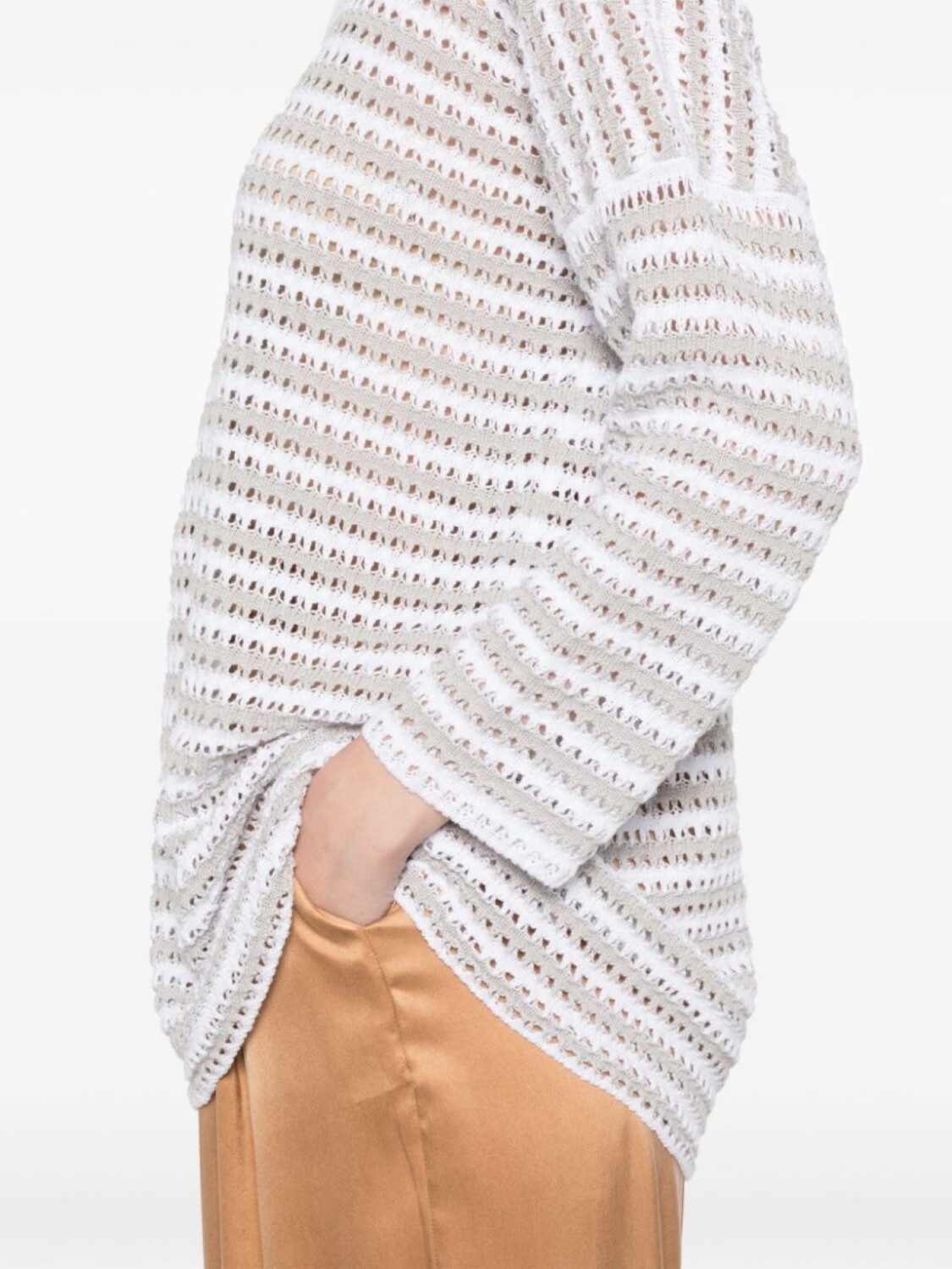 Полосатый джемпер рыхлой вязки Le Tricot Perugia, белый 57 056₽