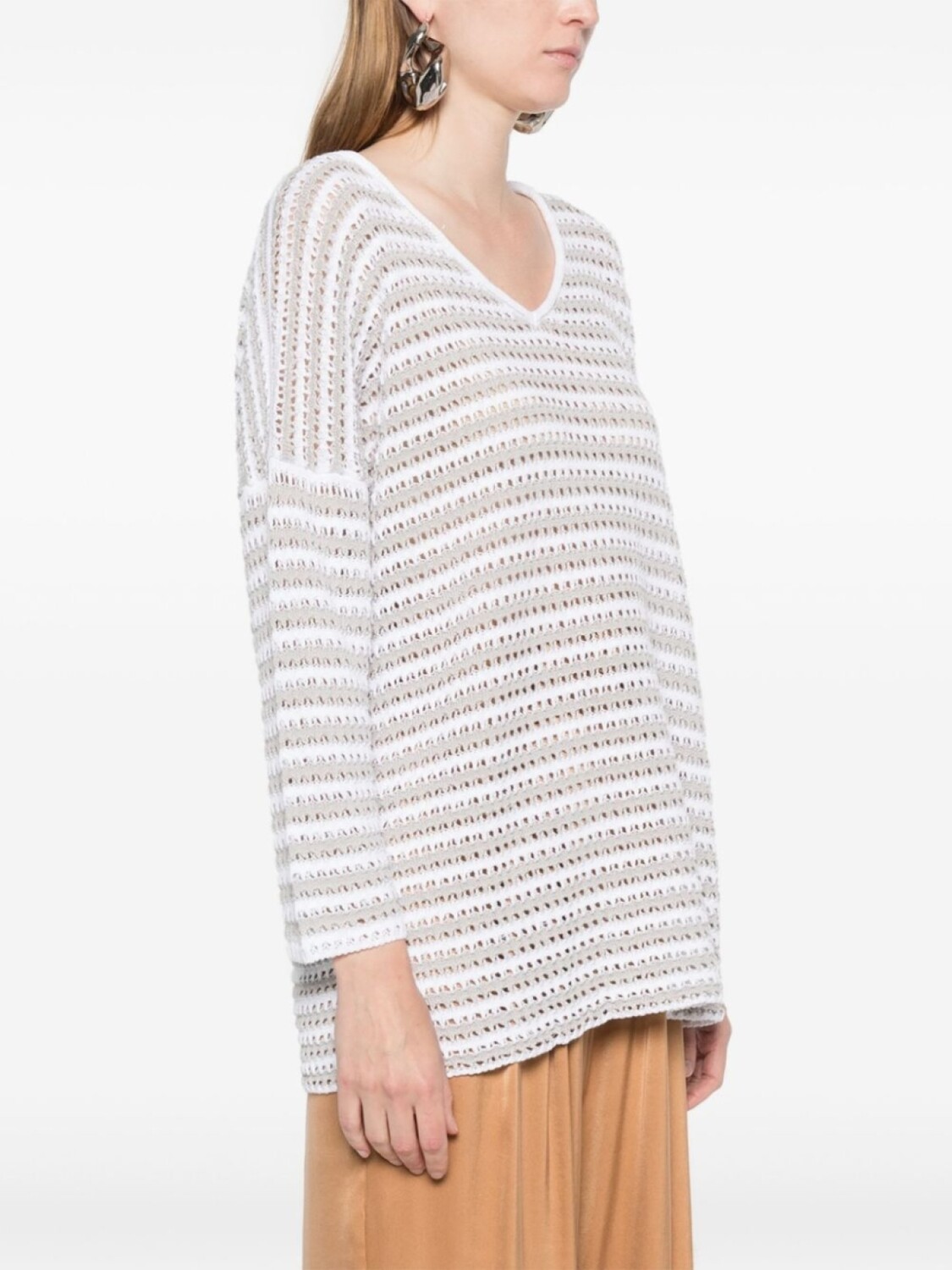 Полосатый джемпер рыхлой вязки Le Tricot Perugia, белый
