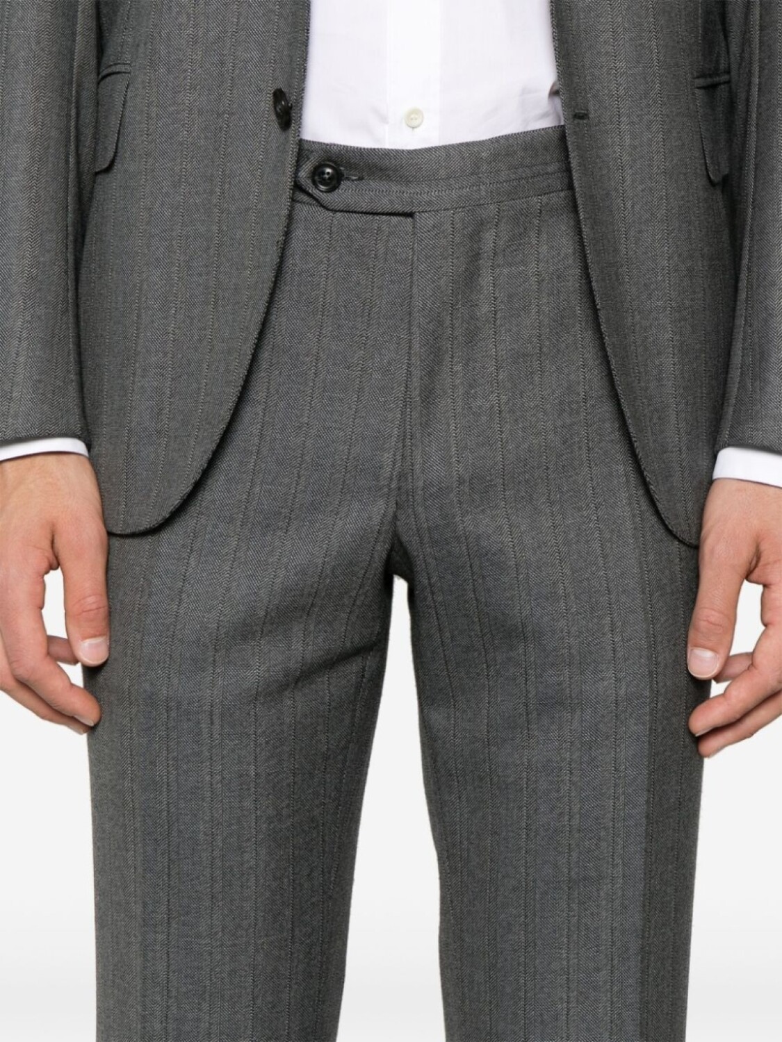 Подробнее о товаре: • серый • смесь шерсти и кашемира • принт в елочку • застежка на пуговицах спереди • зазубренные лацканы • подплечники • длинные рукава • манжеты на пуговицах • прорезной карман на груди • защипы • два кармана с клапанами по бокам • две боковые шлицы сзади • внутренние прорезные карманы • цельная подкладка • потайная застежка на молнии и пуговицах • петли для ремня • два прорезных кармана по бокам • стрелки • два прорезных кармана на пуговицах сзади • длина в пол