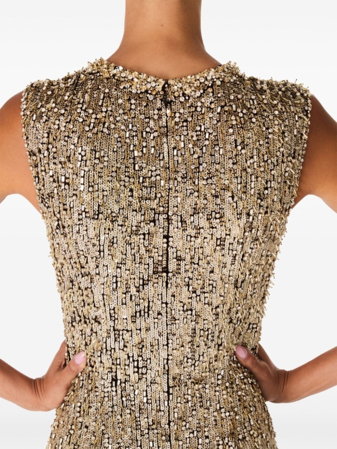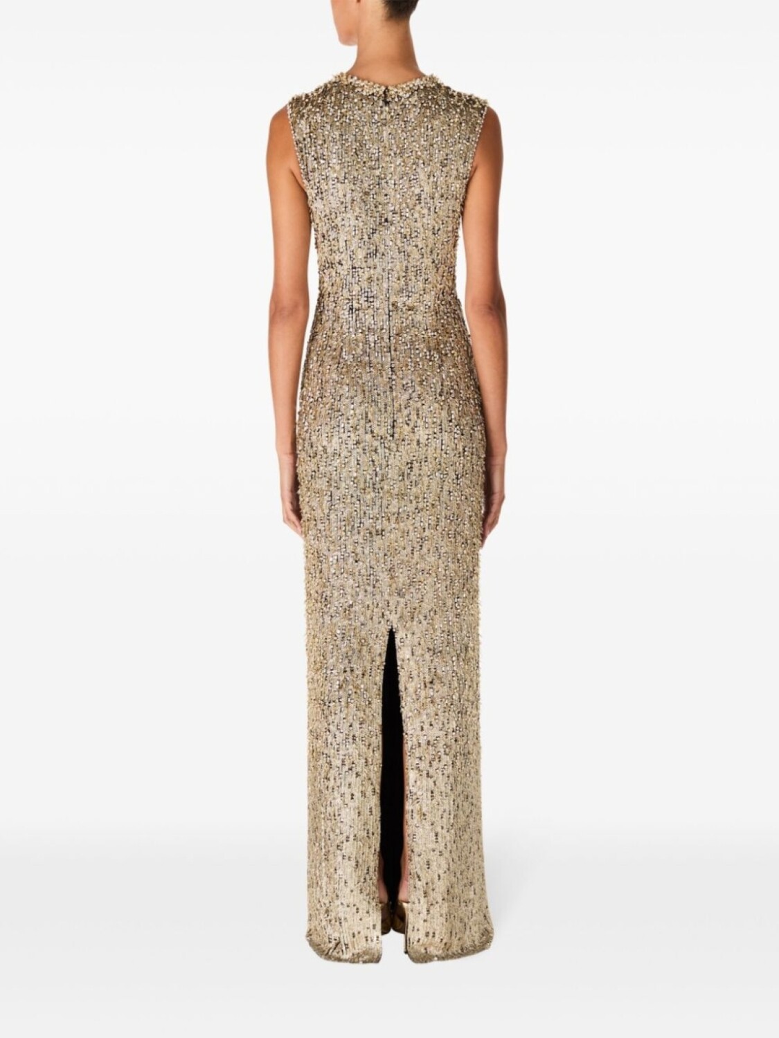 Золотистый, шифон, потайная застежка на молнии сзади, круглый вырез, детали из бисера, без рукавов, вырез сзади, длинная модель, атласная подкладка