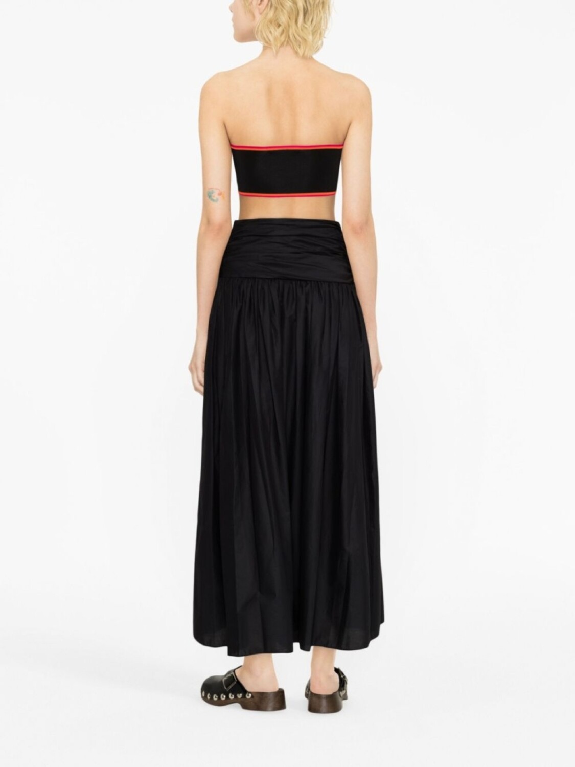 Черный, эластичный материал, трикотаж в рубчик, модель бандо, контрастные края, логотип-аппликация, без бретелей, укороченная длина и прямой подол.