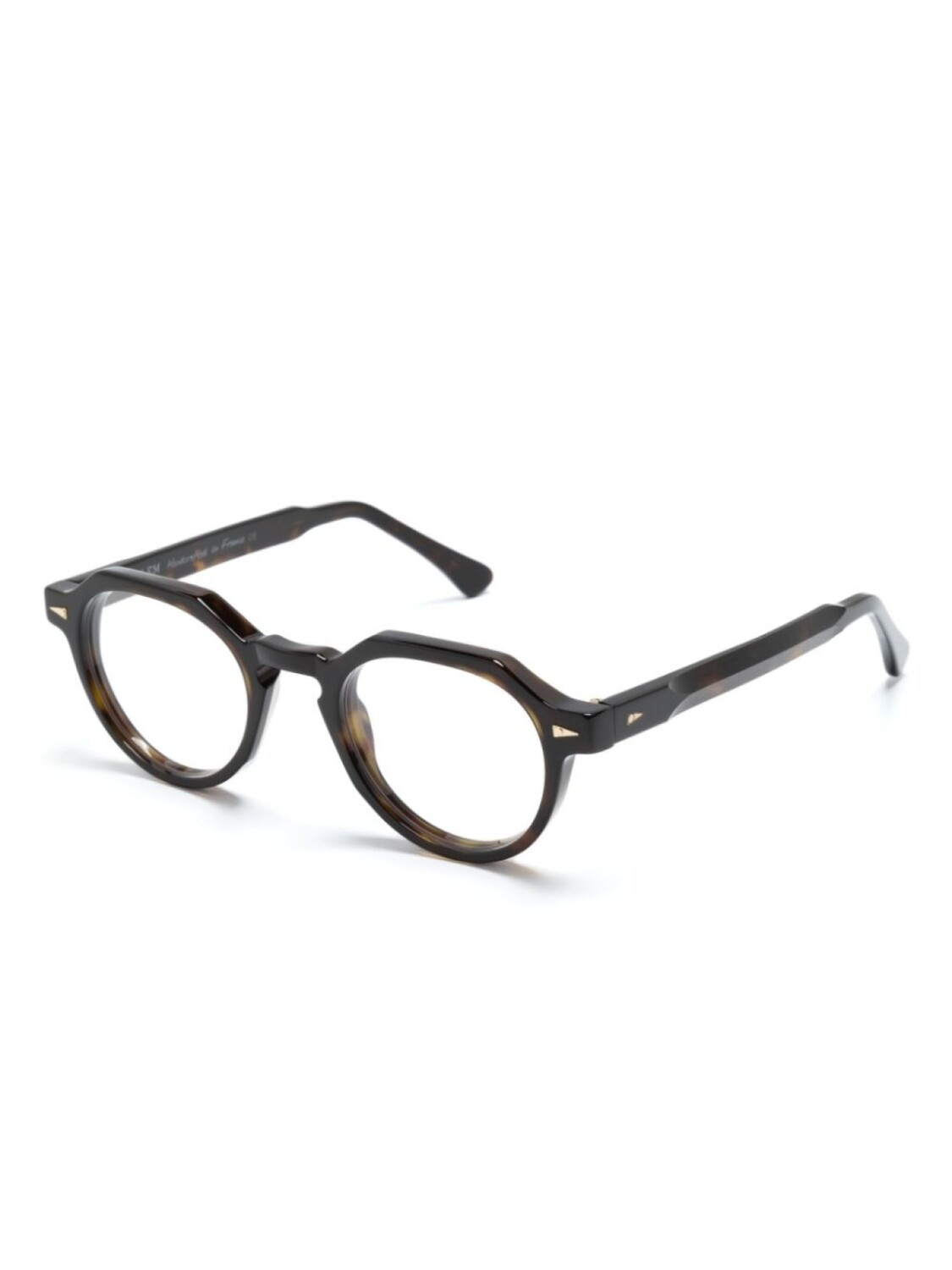 Серо-коричневый, ацетат, прозрачные линзы, круглая оправа, прямые дужки и дужки с закругленными концами. Обратите внимание, что на FARFETCH продаются оправы с линзами без диоптрий. В комплект входит защитный чехол для очков.