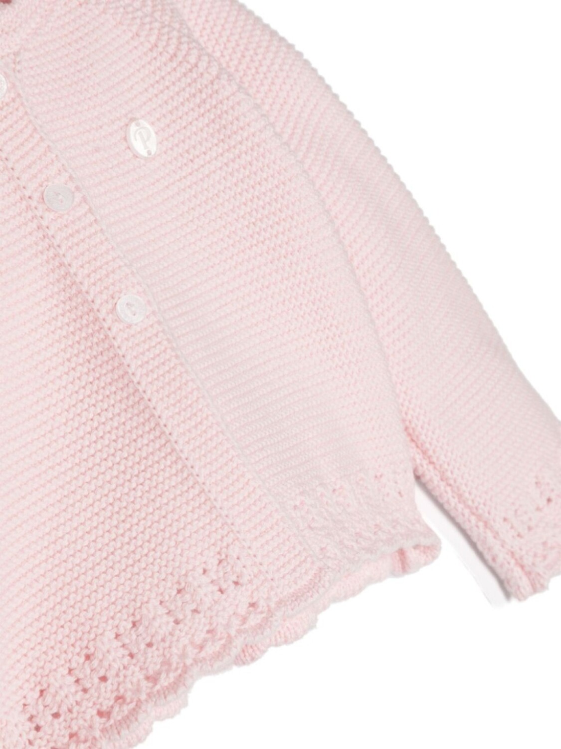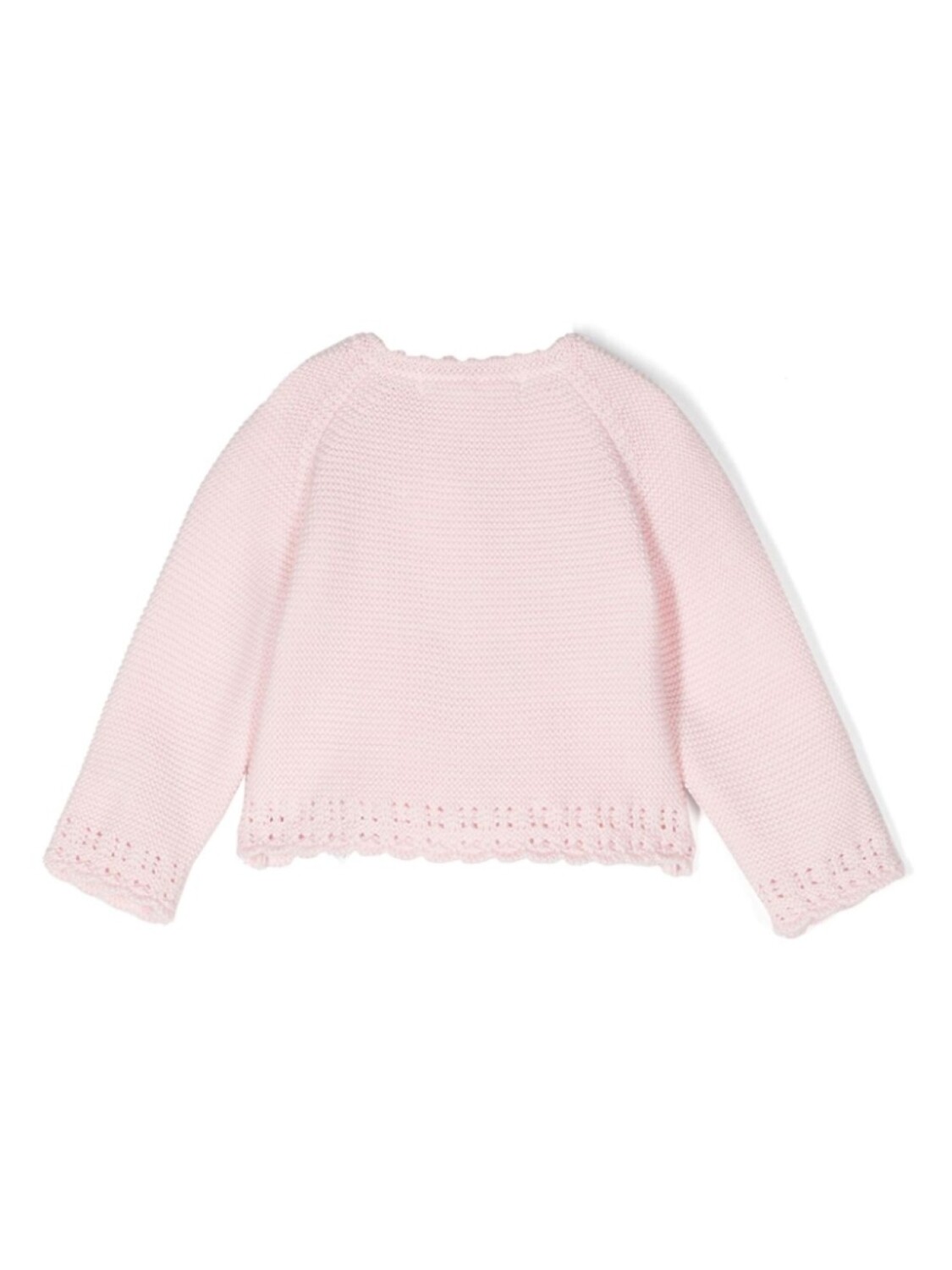 Розовый, хлопок, вязаный дизайн, закругленный воротник, логотип-аппликация, рукава реглан, прорези на подошве, края с фестонами, модель без подкладки, короткая застежка на пуговицах спереди
