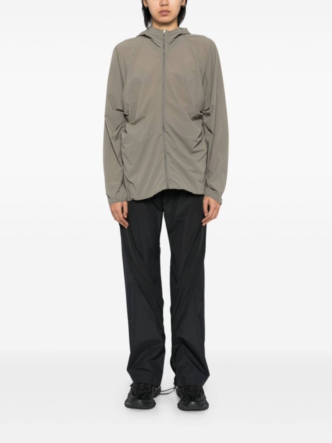 Расцветка Beluga Grey, без эффекта утяжеления, драпировка, классический капюшон, длинные рукава, эластичные манжеты, внутренняя кулиска на талии, два кармана на молнии по бокам, застежка на молнии спереди, Это унисекс-модель. Обратите внимание, что для нее используется мужская размерная сетка.
